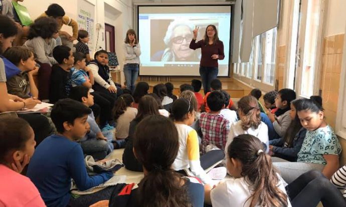 L’escriptora i filòloga, Carme Martí, autora del llibre “Un cel de plom”, ens ha acompanyat durant tota la investigació sobre el llegat de la @NeusCatala_ . Ha estat la connexió directa a la vida de la Neus. Avui ha compartit amb tots els infants de l’escola les seves vivències amb ella. Moltíssimes gràcies Carme! #altarmemòria2019