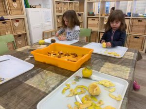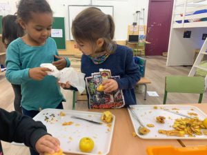 A l’ambient experimentem hem pelat i tallat una fruita de la tardor, el codony, i ens hem endut una bona sorpresa al trobar què hi ha a dins: un munt de llavors! Així doncs, hem decidit plantar-les a l’hort del pati, juntament amb unes llavors de llimona que hem trobat.