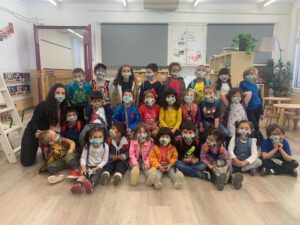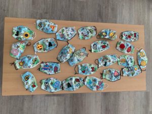Després d’unes setmanes cosint i planxantels ifants de la classe vermella ja tenim les nostres mascaretes finalitzades!!