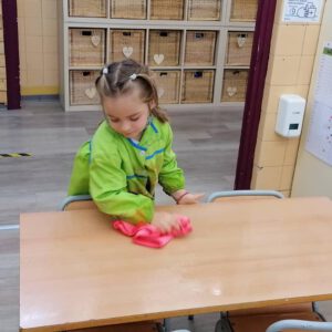 Tenir cura dels materials, recollir i endreçar, deixar l’espai com s’ha trobat, netejar el que s’ha fet servir… També són valors i hàbits que es treballem a l’escola.