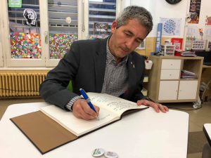 Ens va acopanyar el Sr. Josep Gonzalez-Cambray, president del Consorci d’Educació de Barcelona i Director General de Centres Públics del Departament d’Educació; la Sra. Mercè Massa, gerent del CEB; la Sra. Empar Garcia inspectora d’Educació de l’escola, la Sra Núria Marin, suddirectora general del Departament d’Educació i tècnics del CEB.