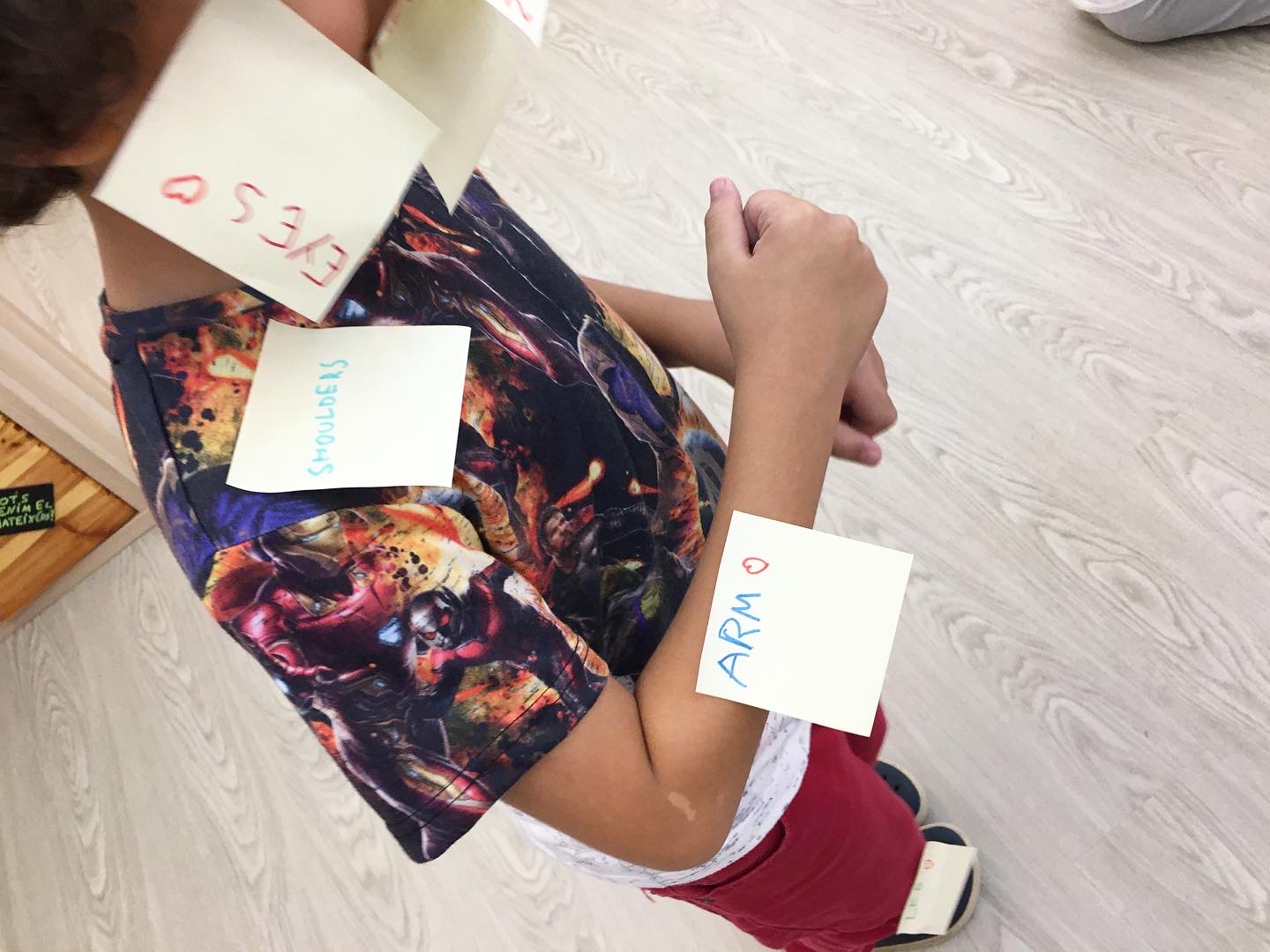 2nd graders went on a word and picture hunt around the classroom. After matching the picture with the name we used sticky notes to label the body parts of our classmates!