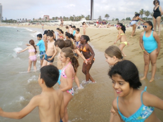 Les classes de 3r i de 4t donem la benvinguda a l’estiu amb un bany a la platja del Bogatell.