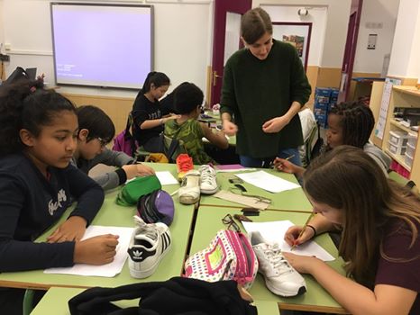 Avui la Berta i la Carlota, dissenyadores de indumentària, han vingut a la classe de 6è per ajudar-nos amb el nostre projecte de recerca.