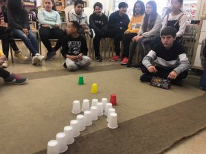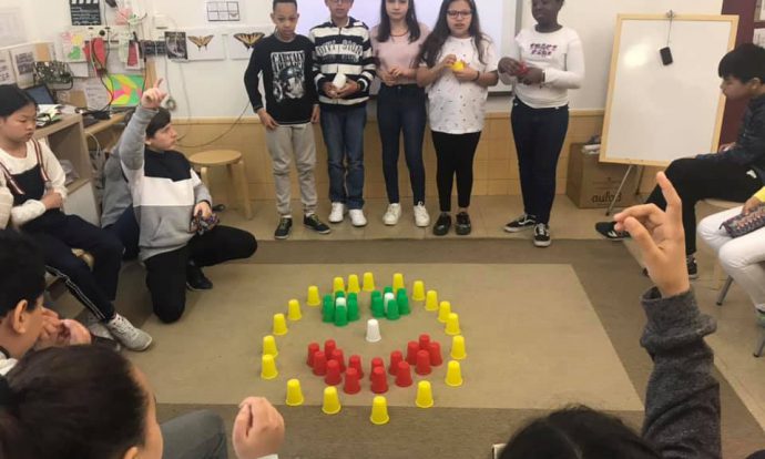 Fomentem la creativitat mitjançant la representació de conceptes i idees amb recursos limitats. En aquest cas només utilitzem gots de plàstic. Sou capaços d’esbrinar el què han volgut expressar els infants de sisè amb aquestes composicions?