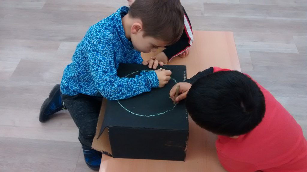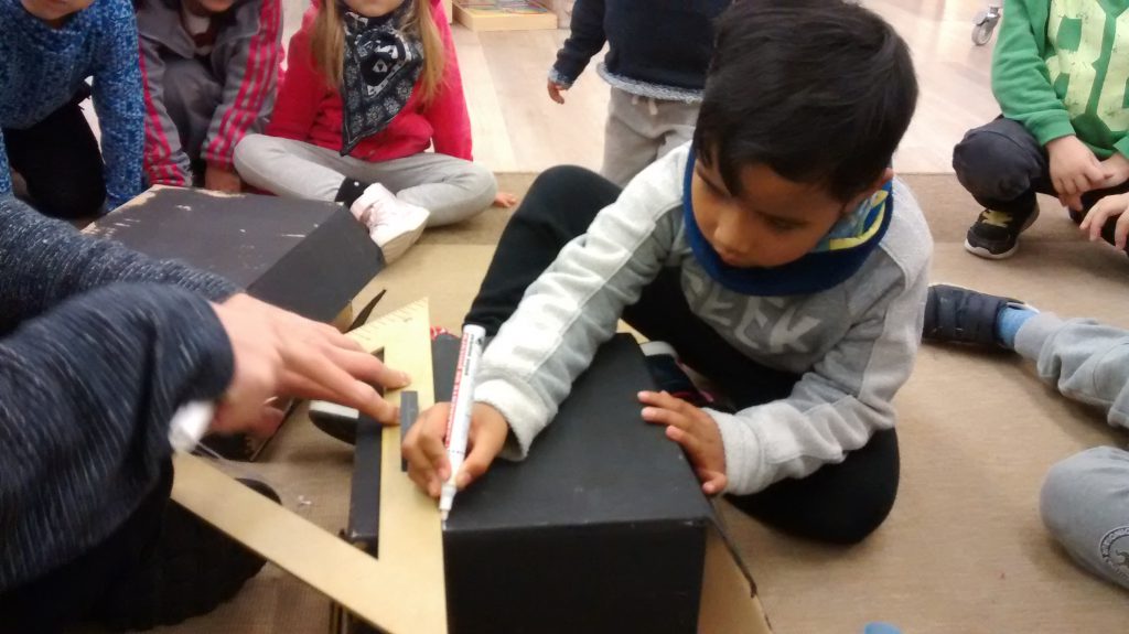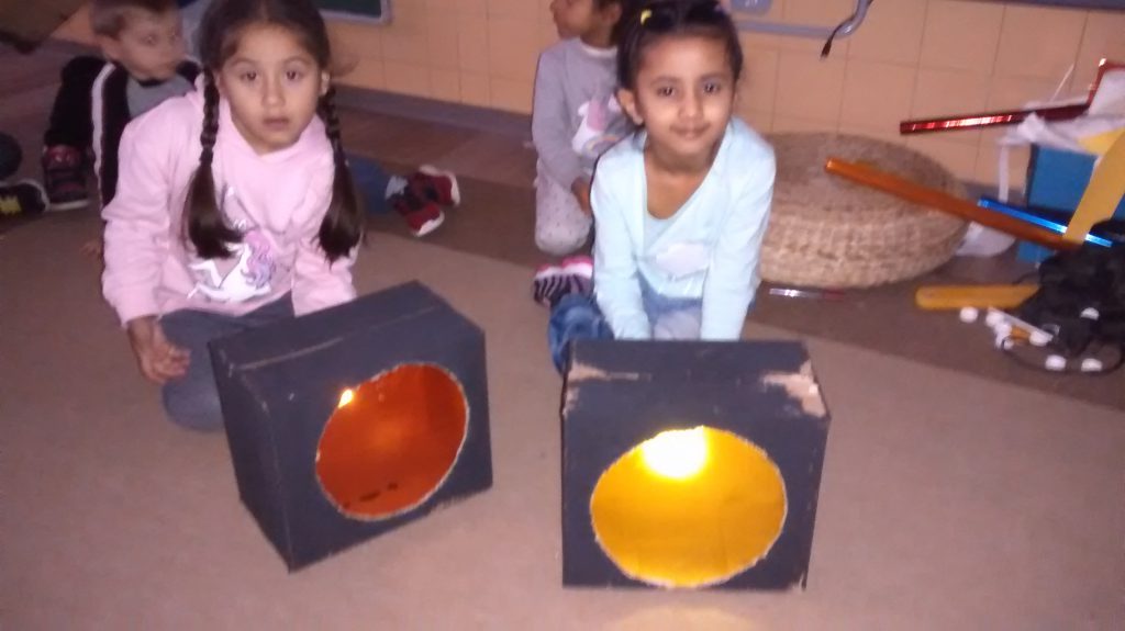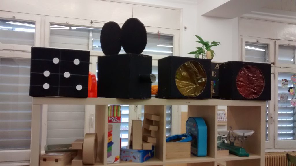 A la classe de la tortuga hem construit: dos focus, una càmera i una taula de so pels tastets.