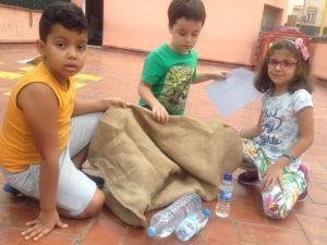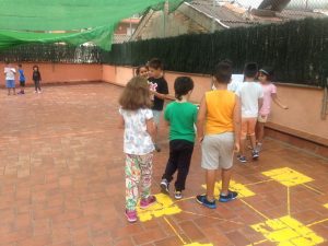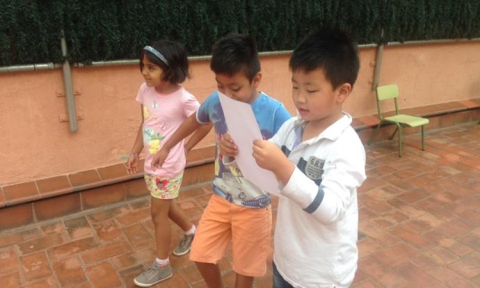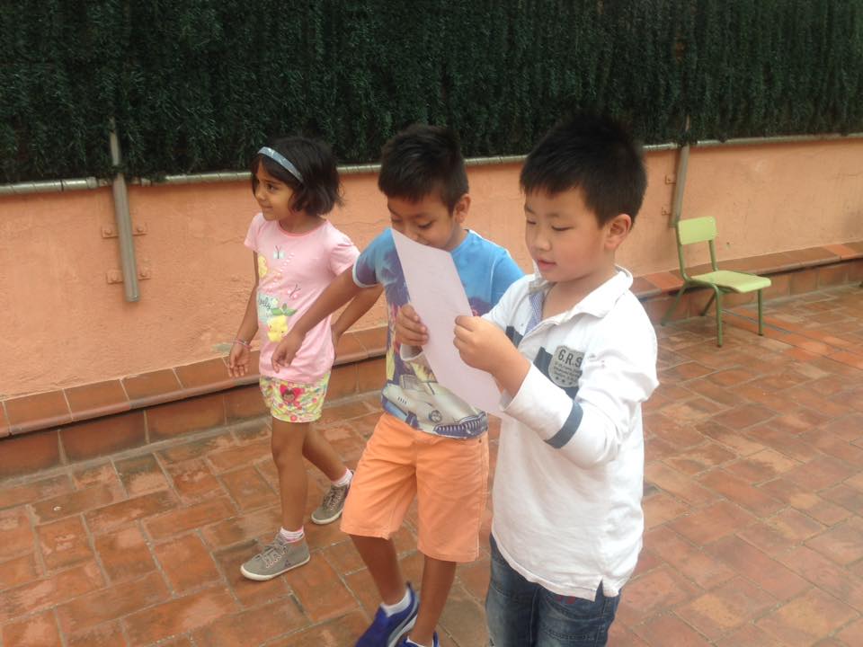 3 passos a la dreta, 5 endavant, 7 a l’esquerra… utilitzem els passos com a mesura per poder trobar un objecte ple, un de buit, un pesant o un de lleuger. Qui el trobarà primer?