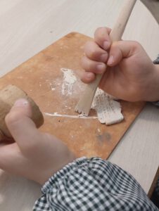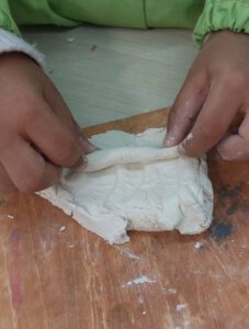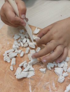 A l’Ambient de Som artistes modelem fang blanc, el deiexem assecar i… a pintar!