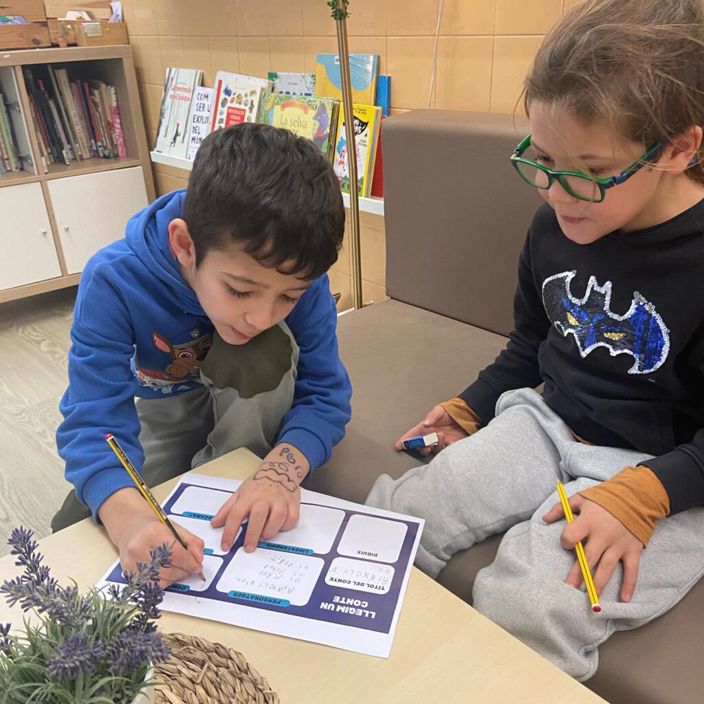 A les sessions d’Ara Escric de Mitjans ens hem endinsat al bosc per conèixer i recordar contes de la tradició oral ambientats en aquest espai natural. Hem identificat els elements d’una narració i hem començat a crear les nostres històries amb les cartes de Prop. Fem volar la imaginació per escriure la nostra creació per als Jocs Florals!