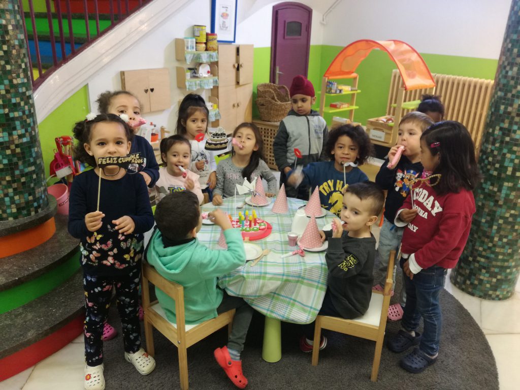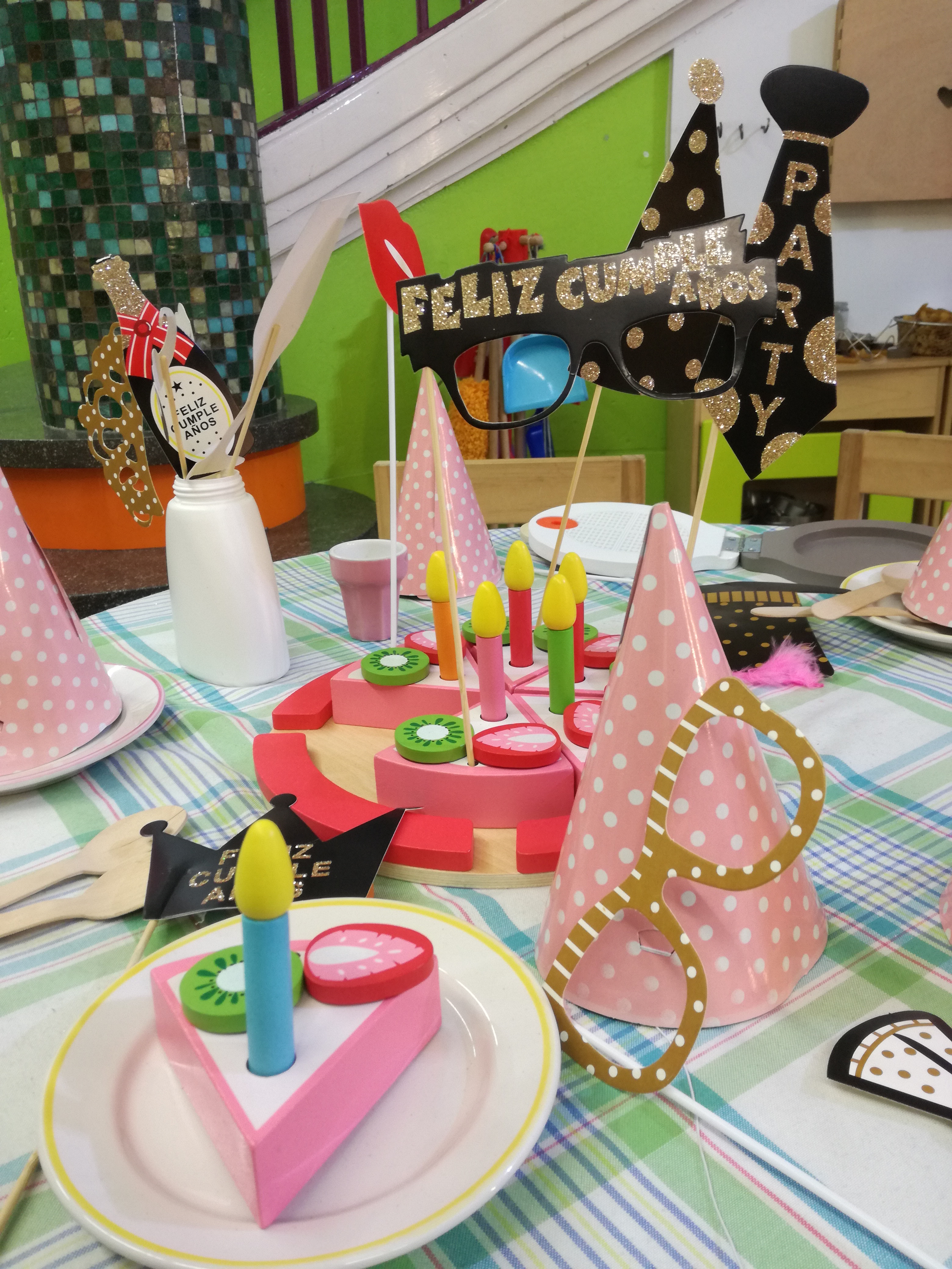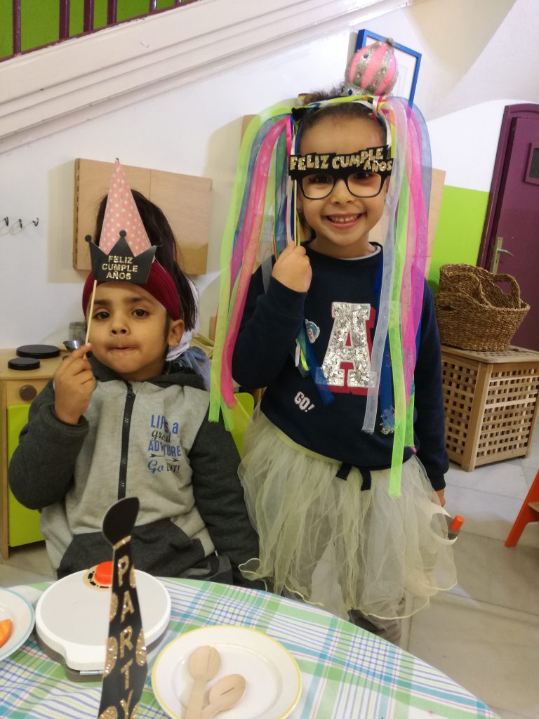 Avui, a l’ambient de joc simbòlic hem organitzat una festa d’aniversari per la Mercè, la mestra d’anglès. Hem decorat l’espai amb garlandes florals, hem fet un pastís de maduixa i kiwi i ens hem engalanat per la celebració. Després d’un parell d’assajos, hem bufat les espelmes a ritme de “Happy Birthday”. Com hem gaudit!