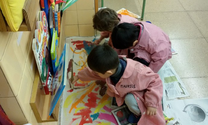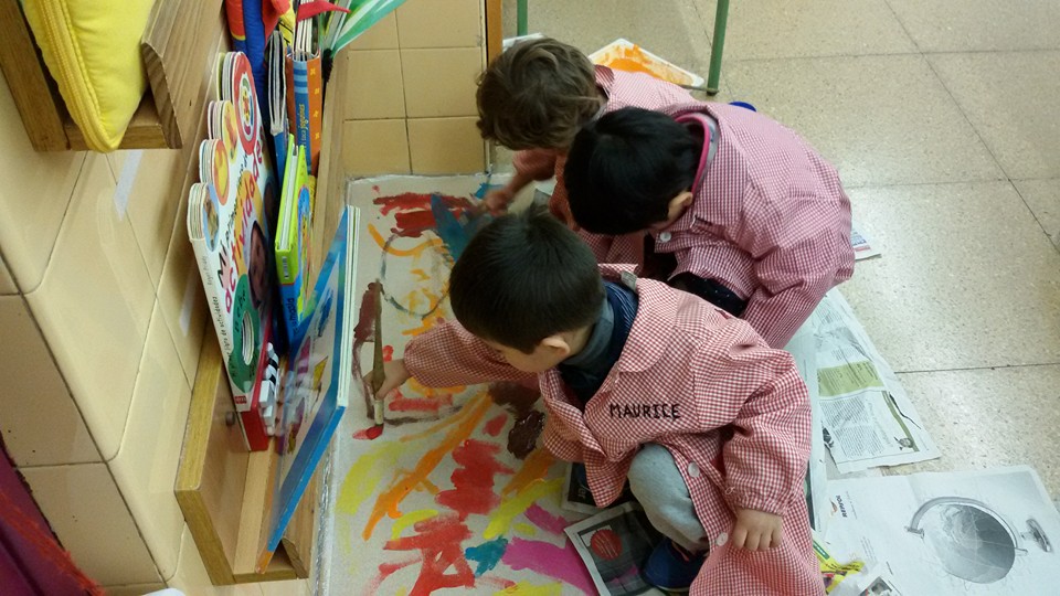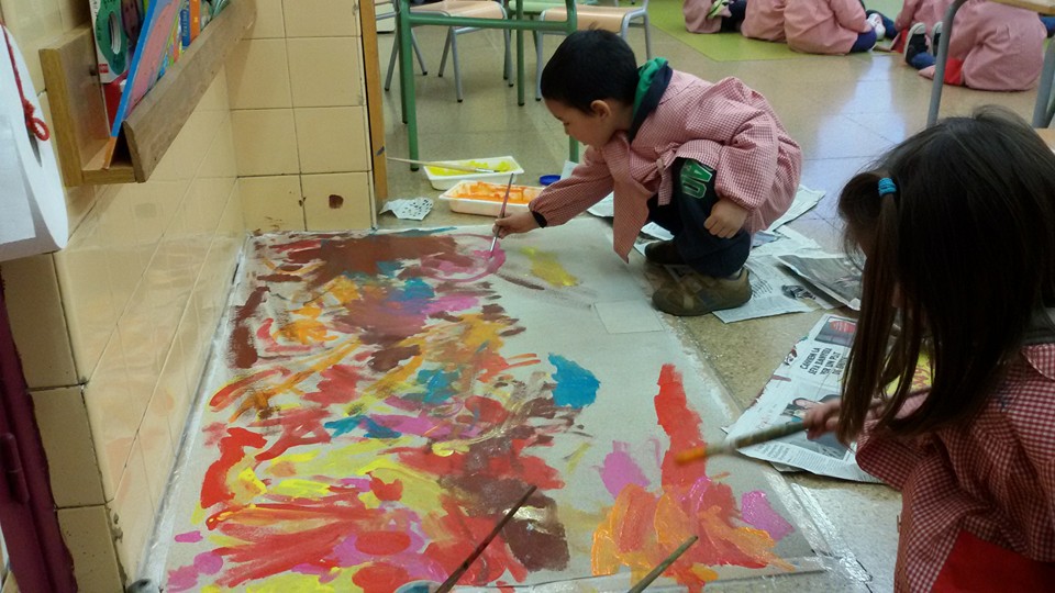 Els alumnes de P3 pintem una catifa de suro per la biblioteca de la nostra classe, és una activitat que forma part del projecte d’escola somColors.