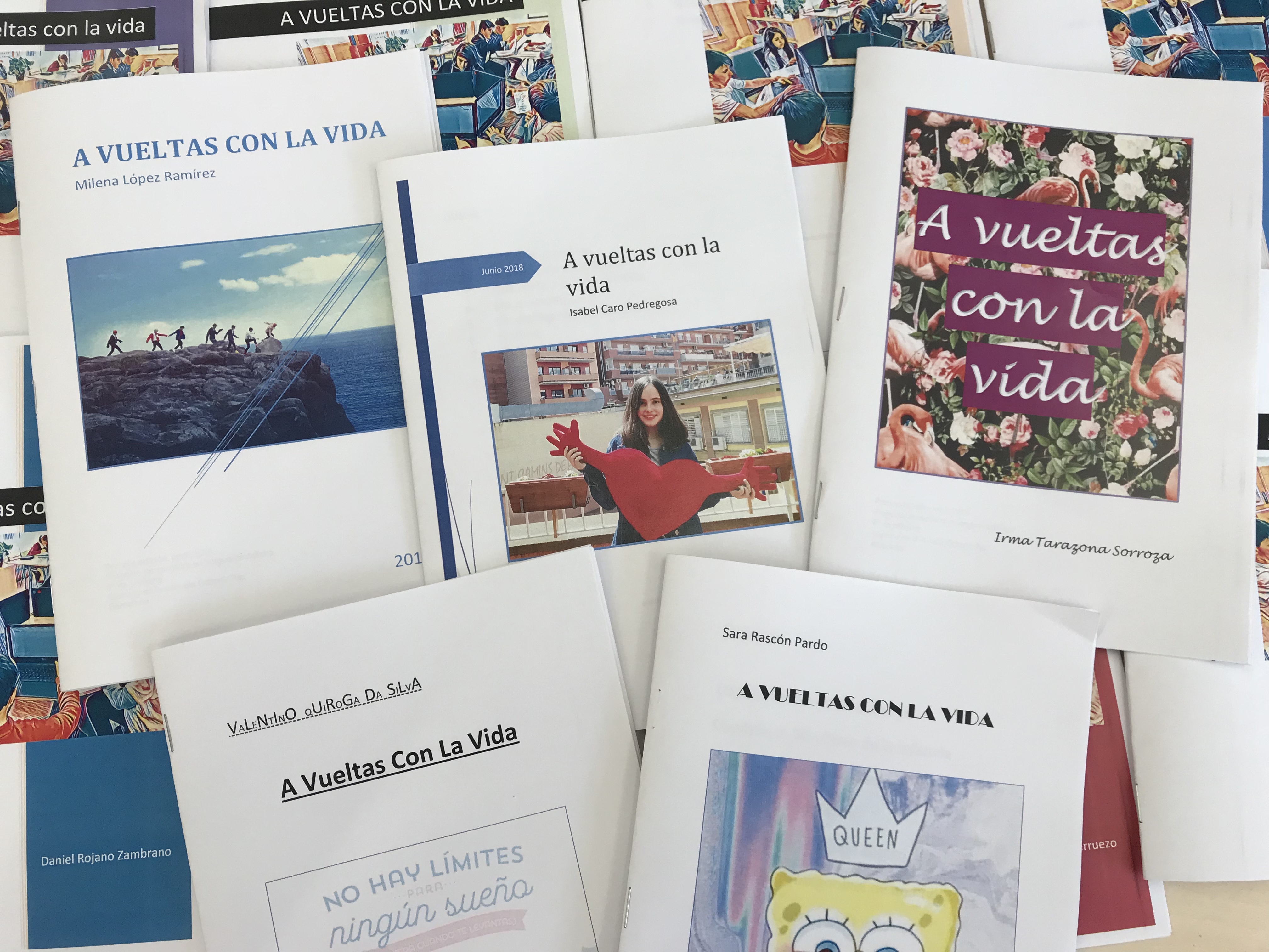 I ja els tenim aquí!!! Ben calentets i acabats de sortir del forn! Després d’un llarg i laboriós procés, el llibre “A vueltas con la vida”, finalment veu la llum. Bona feina a tothom!!!