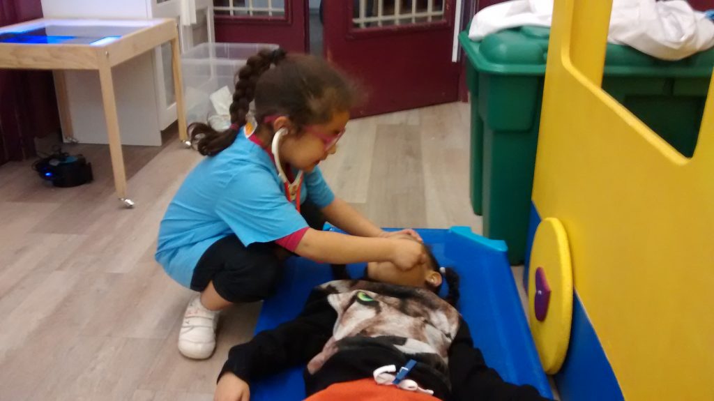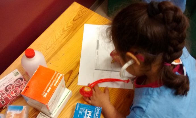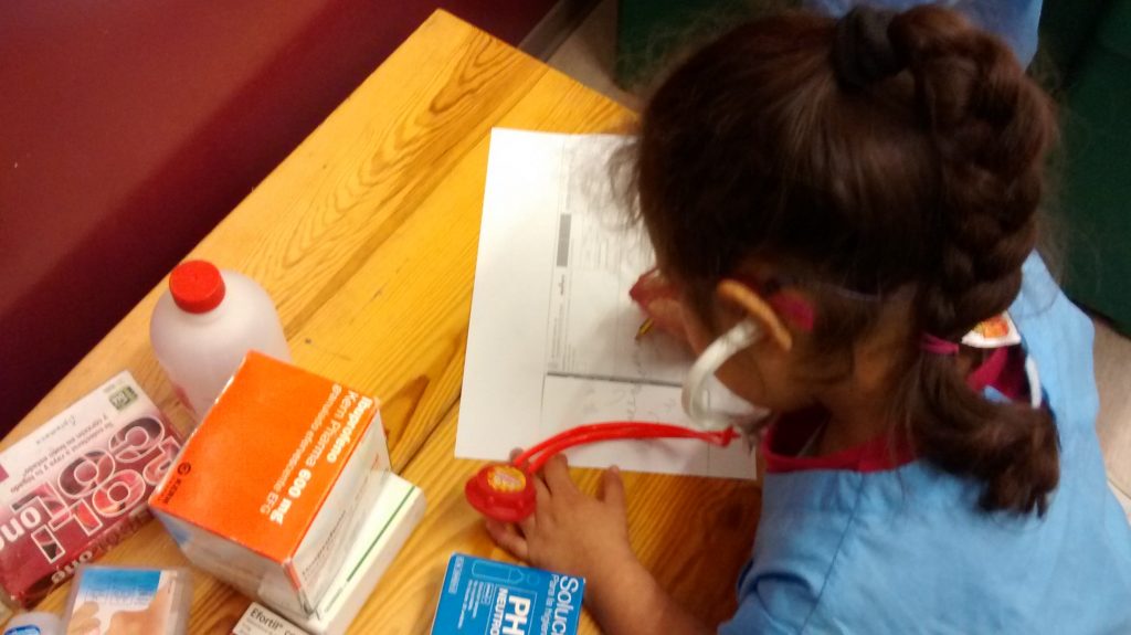 la doctora Alisson visita al malat i li recepta un xarap pel mal de coll.