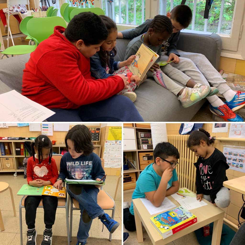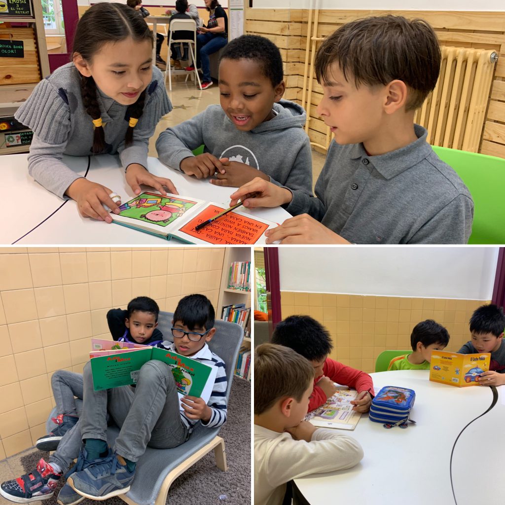 Els infants de 5 anys de la comunitat de petits acabem la setmana gaudint amb la lectura i l’acompanyament dels nostres padrins i padrines lectores, els infants de 4t!