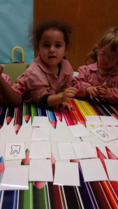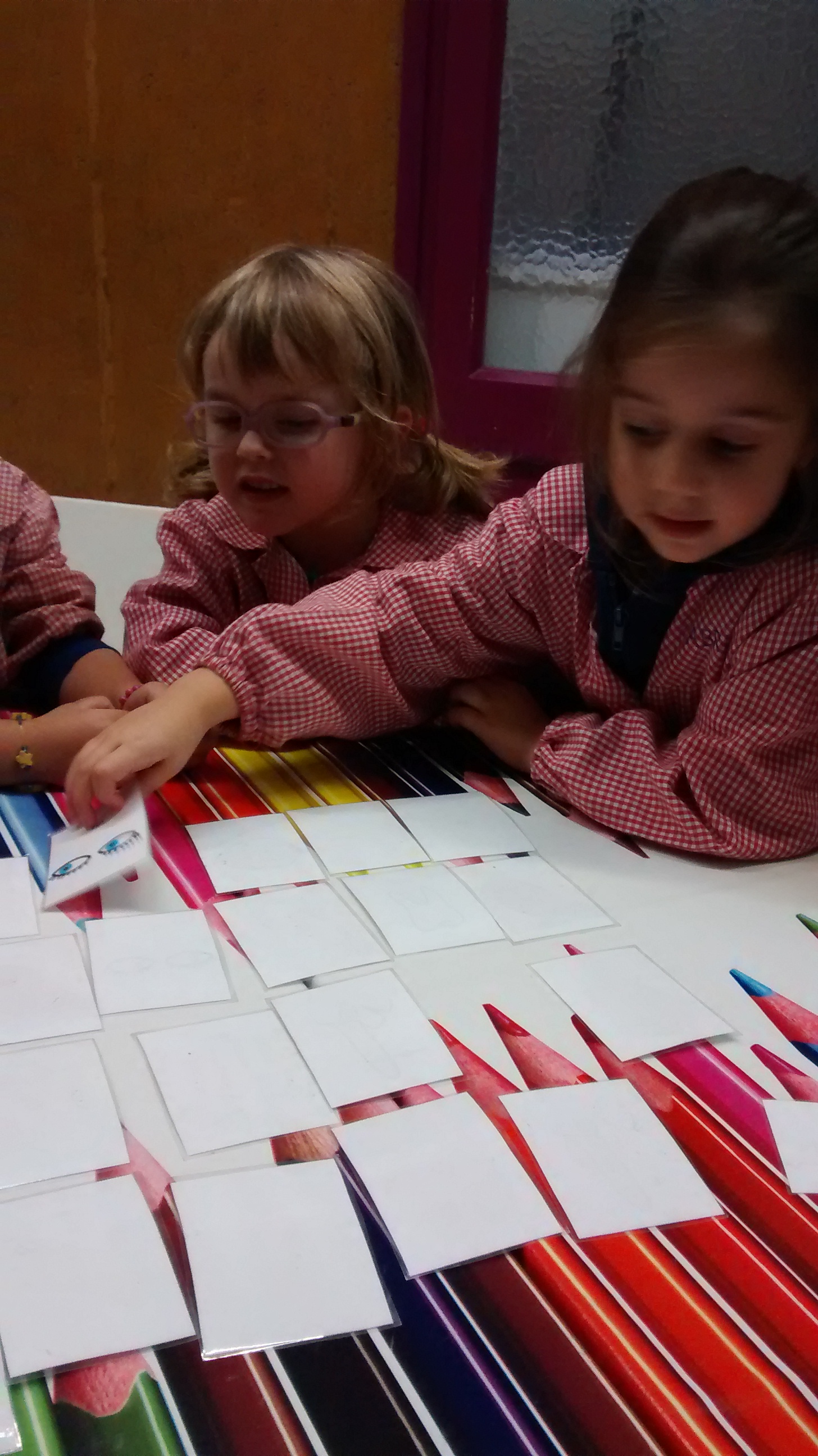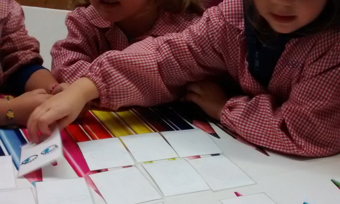 Els nens i les nenes de P3 per aprendre les parts del cos ho fem jugant amb un joc de memòria.