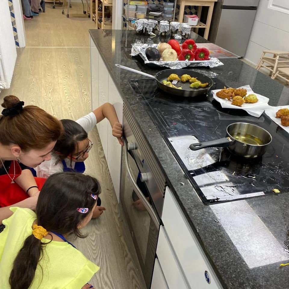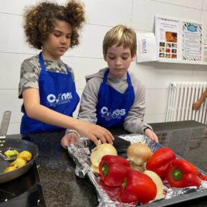 Avui la cuina funciona a ple rendiment. Els infants de la comunitat de grans aprenen a cuinar peix, a preparar una escalivada i a fer galetes casolanes, alternativa als productes industrials processats.