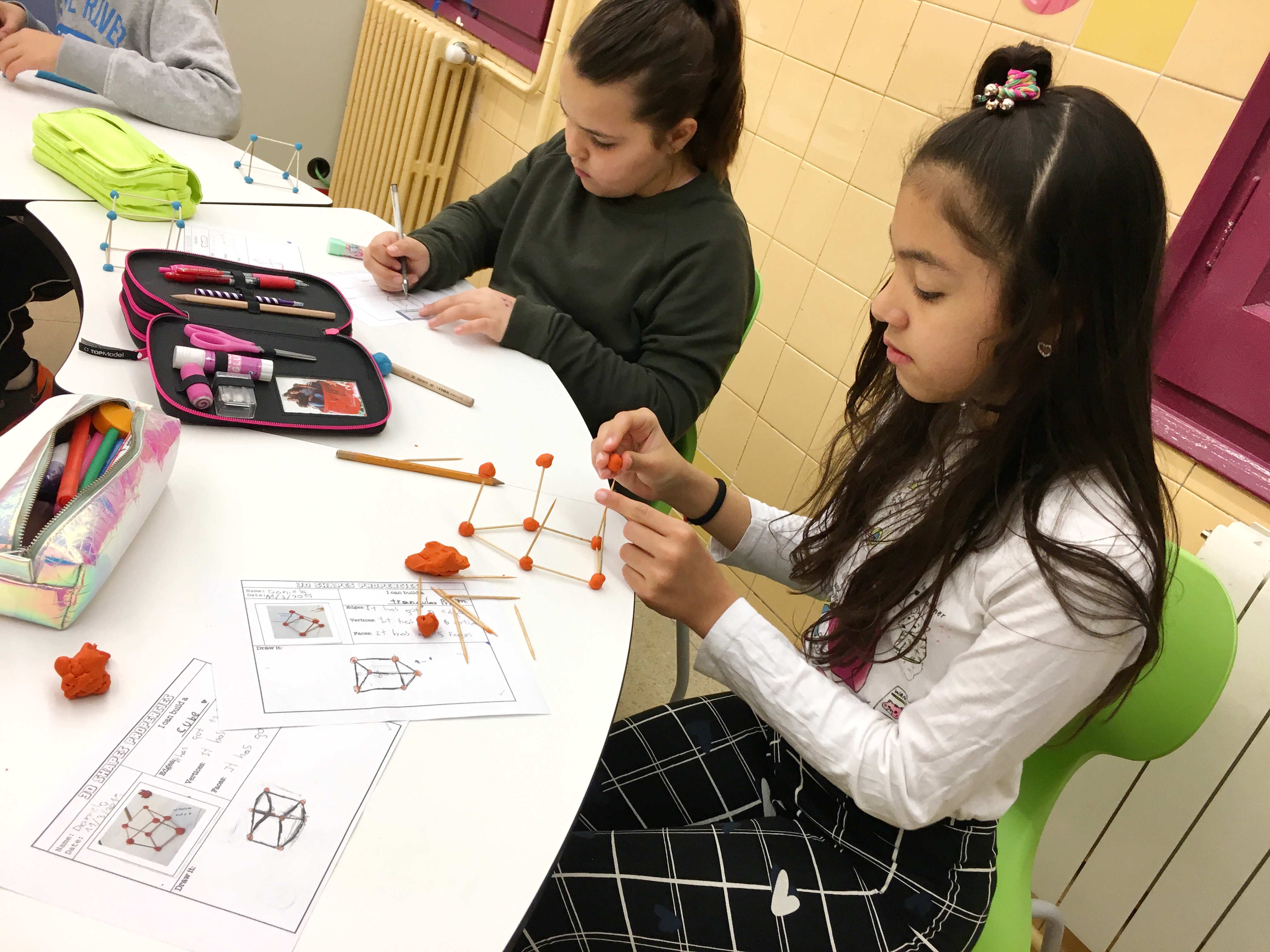 What 3D shapes can you build using toothpicks and play dough? 3rd and 4th graders have been describing the properties of the different 3D shapes they built!