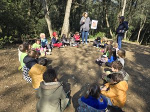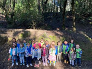 Avui, la comunitat de petits, hem anat al bosc de Can Coll. A més de gaudir d’un dia de natura, hem seguit investigant al voltant del nostre projecte el so. Que podem escoltar quan estem al bosc? Podem escoltar les fulles dels arbres? Podem trobar elements que facin música? Escoltem les mateixes coses que quan som a la ciutat? Aquestes i altres reflexions són les que hem fet avui.