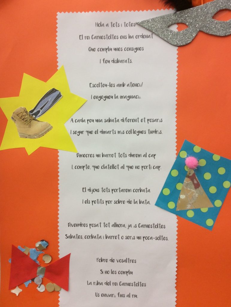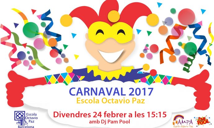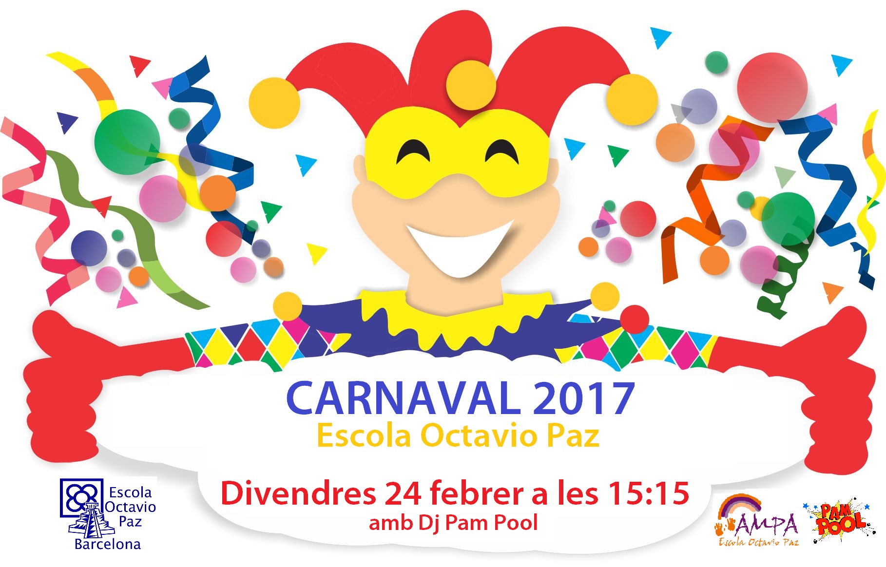 Comença el Carnaval 2017 a l’escola! A partir de demà recordeu de portar les consignes! Avui els missatgers del Rei Carnestoltes han passat per totes les classes. Divendres a les 15:15h esteu tots convidats a ballar amb el Dj Pam Pool! Que comenci la gresca!