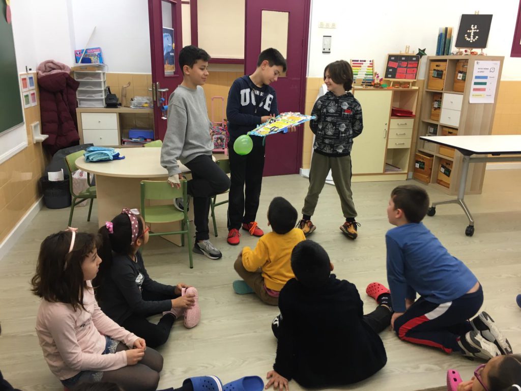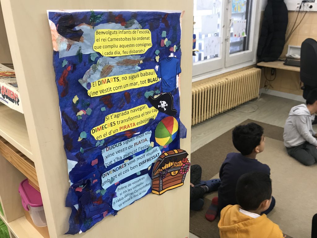 Els alumnes de cinquè han visitat a tots els infants de l’escola per llegir les consignes que el rei Carnestoltes ha preparat per a aquesta setmana.