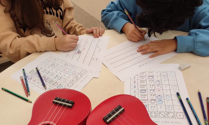 Al de llenguatge musical explorem les possibilitats de l’ukulele afinant-lo i creant diferents ritmes a través del joc. #laboratorisdellenguatge #treballglobalitzat