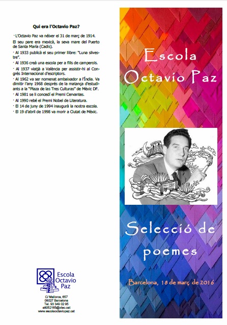 Per celebrar l’aniversari del Premi Nobel de Literatura, Octavio Paz, cada classe prepara un poema dramatitzat. A més, els alumnes grans busquen la comprensió del poema a través de la interpretació de les metàfores.
