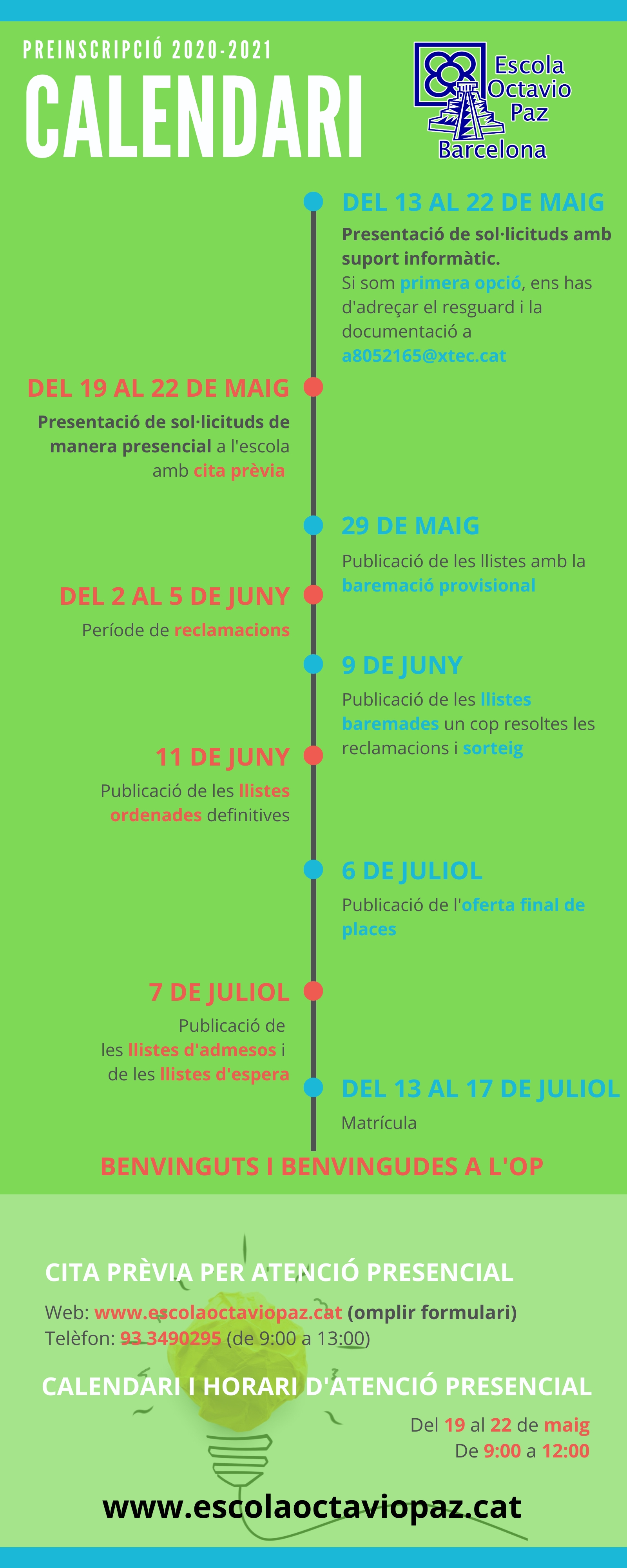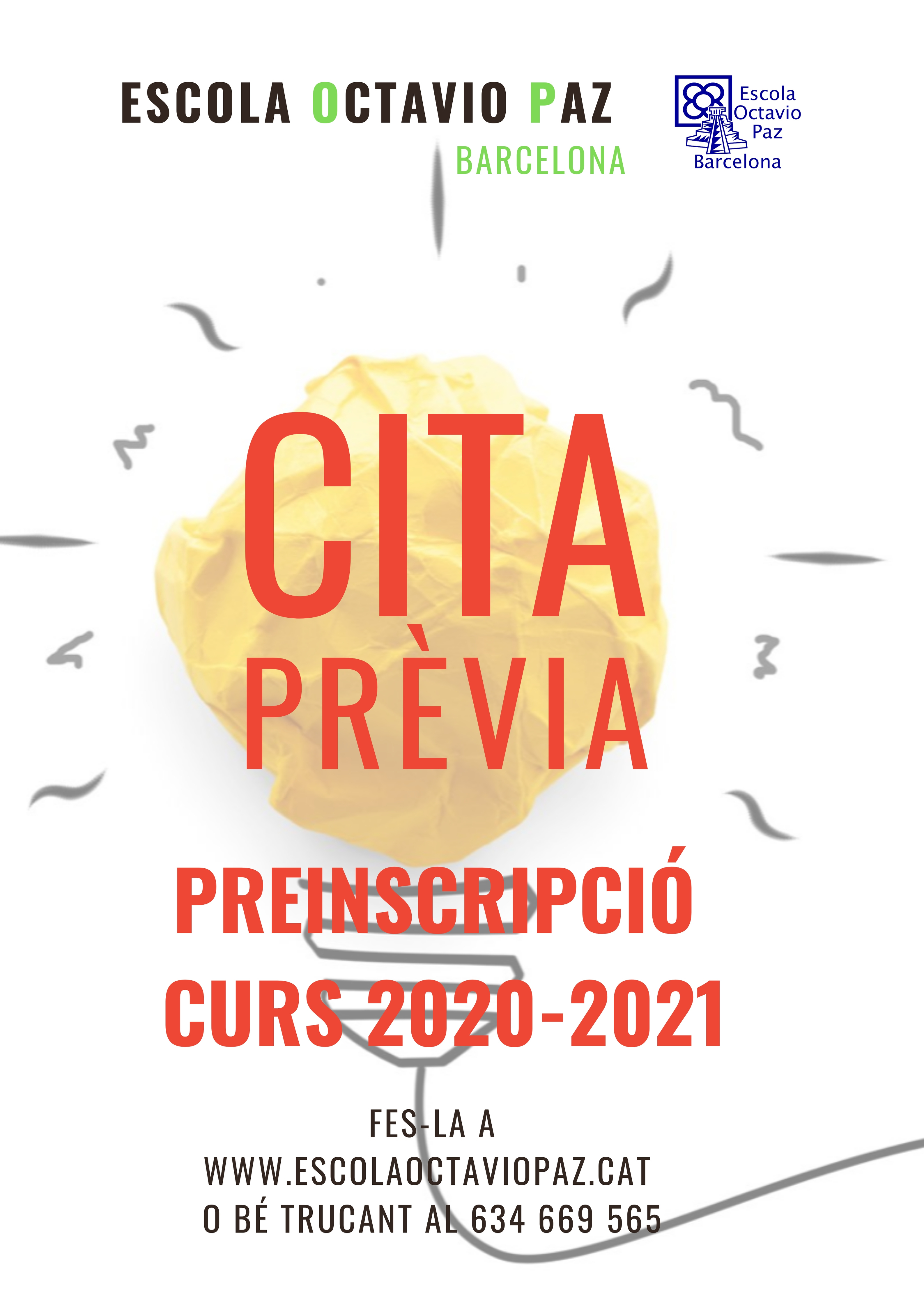 PREINSCRIPCIÓ 2020-2021: Demà i fins divendres l’equip us acompanyarem presencialment en el moment de fer la preinscripció.