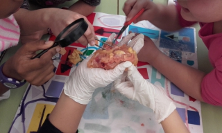 Els alumnes de 4t hem fet la dissecció d’una pota de pollastre per a poder resoldre algunes preguntes com per exemple: de quina manera s’aguanta la pell al múscul o com s’uneixen els músculs als ossos i d’altres.