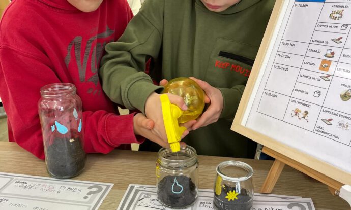 Com les plantes ajuden els animals a viure? Com ens donen oxigen? Les preguntes esdevenen reptes i ens porten a pensar hipòtesi que comprovem amb experiments. Aquesta setmana hem plantant diferents llavors i les hem exposat a diferents situacions de l’entorn.