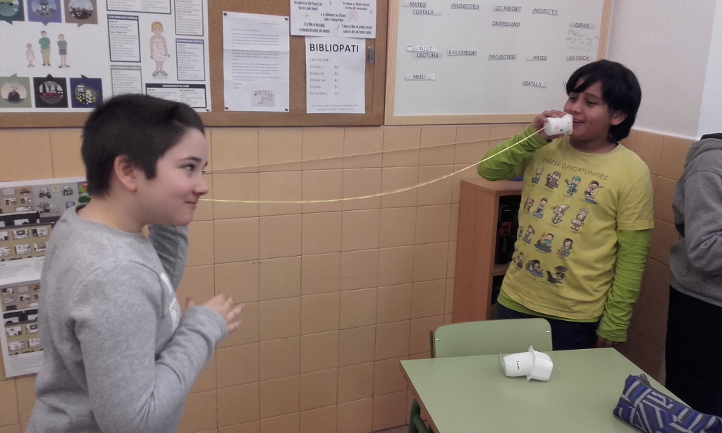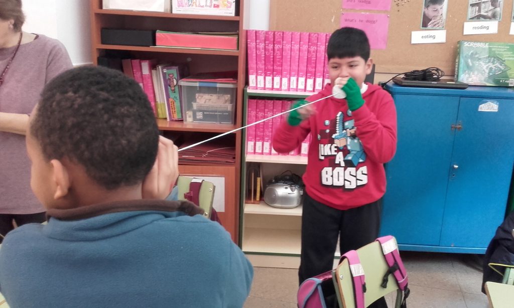 Els alumnes de quart hem construït un artefacte senzill per a poder experimentar sobre com es transmet el so.