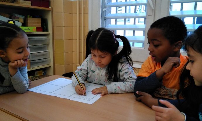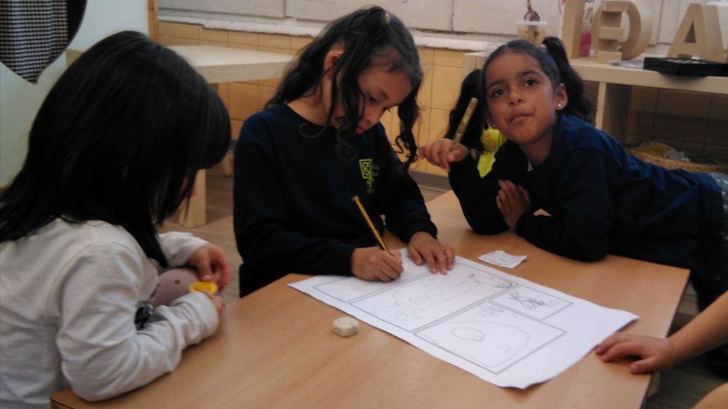 A la classe de les cases estem preparant la nostra aportació als jocs florals de l’escola. Un drac és el protagonista dels diferents còmics creats en petits grups. Aportar idees, posar-nos d’acord, escollir els colors i escriure el text. Pas a pasar, ens iniciem en el treball cooperatiu.