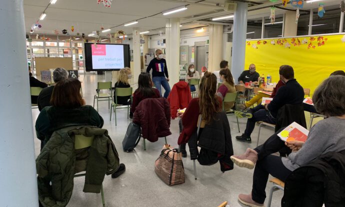 Compartim i reflexionem entorn els projectes de recerca i la seva mirada globalitzada amb l’equip de mestres de l’escola Santa Anna de Premià de Dalt. Una tarda plena de reptes i de ganes de millorar la nostra pràctica.