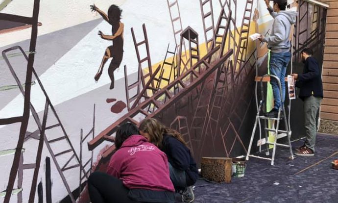 Alumnes i mestres de l’@EscolaMassana plasmen a la paret del pati creativitat, professionalitat i art. Gràcies per la vostra feina!