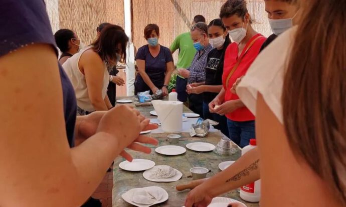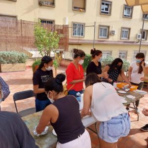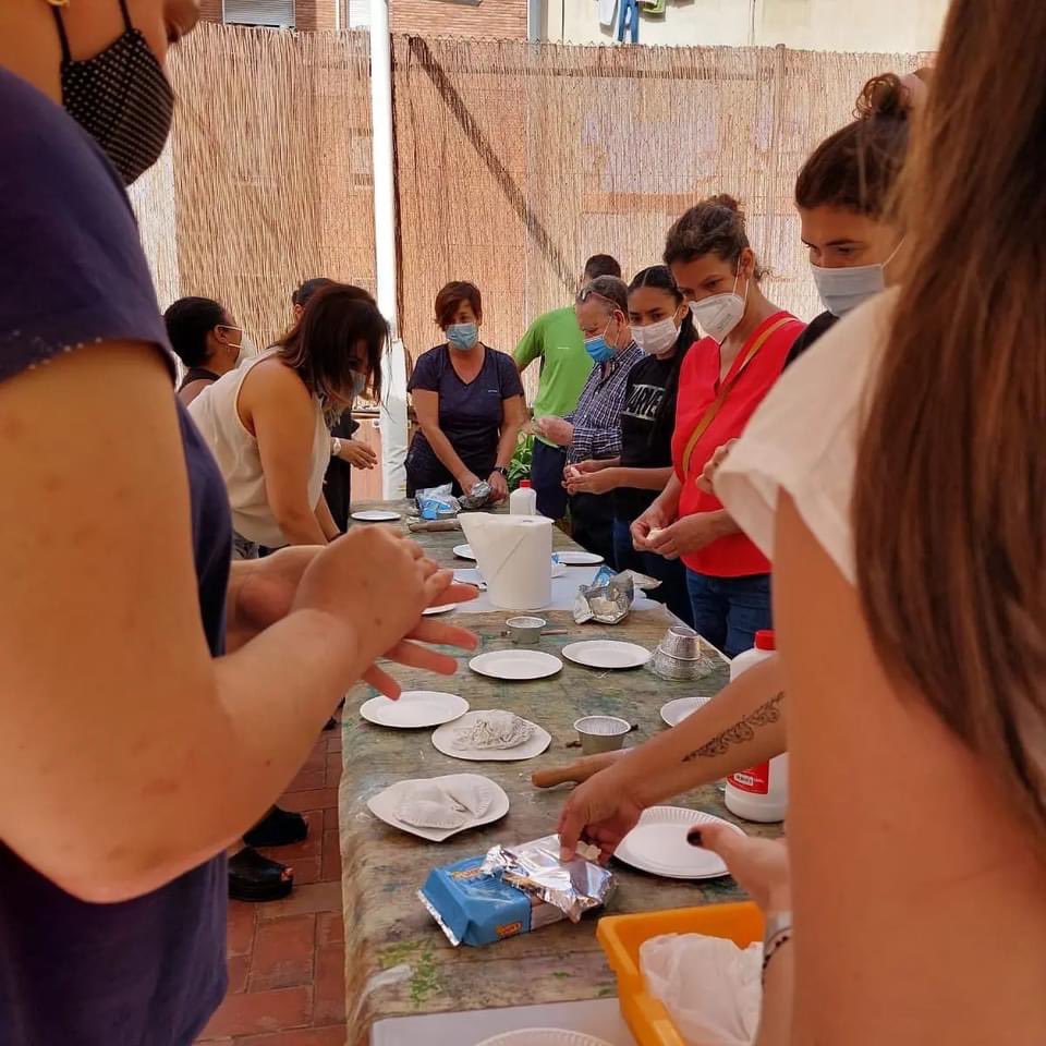 Les famílies de l’ 1G cuinen la seva participació artística a la instal.lació col·lectiva de l’escola. Creant amb les mans!! #reunioambfamilies