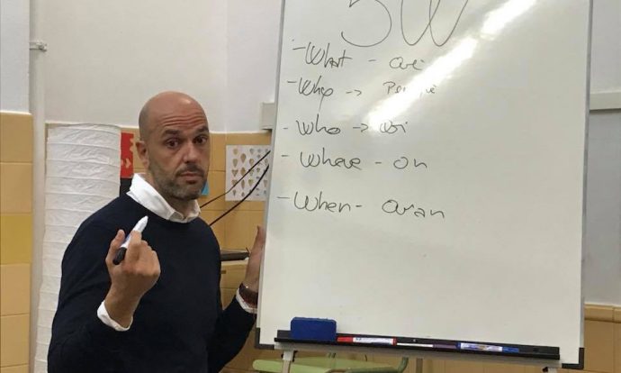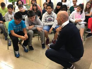 A 5è i 6è hem fet una molt interessant roda de premsa amb en David Melgarejo, periodista de TV3. Ens ha desvetllat el secret per fer un bon telenotícies i ens ha deixat un titular: “Les notícies sempre ens han de fer pensar”.