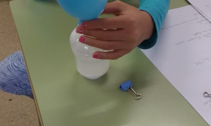 Day 2: L’osset de llaminadura s’ha fet més gran! Ara ja sabem que és gràcies a l’osmosi. A més a més, hem pogut inflar un globus sense bufar, gràcies als gasos de la fermentació. No tots els grups ho han aconseguit!