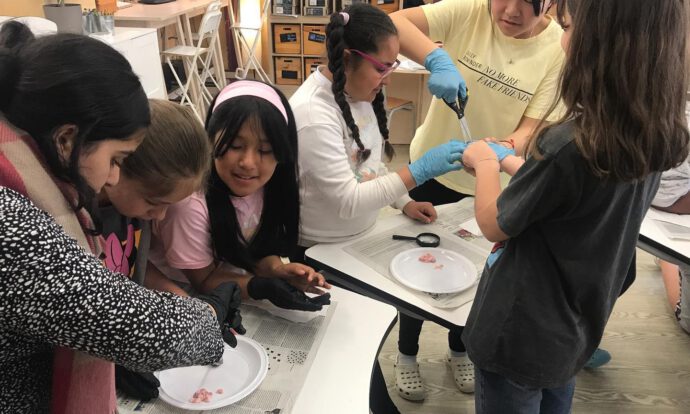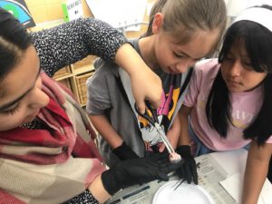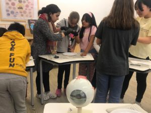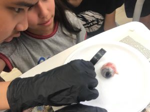 Disseccionem un ull i observem de prop les diferents parts de l’ull com la còrnia, l’iris, la pupil·la, el cristal·lí i la retina.