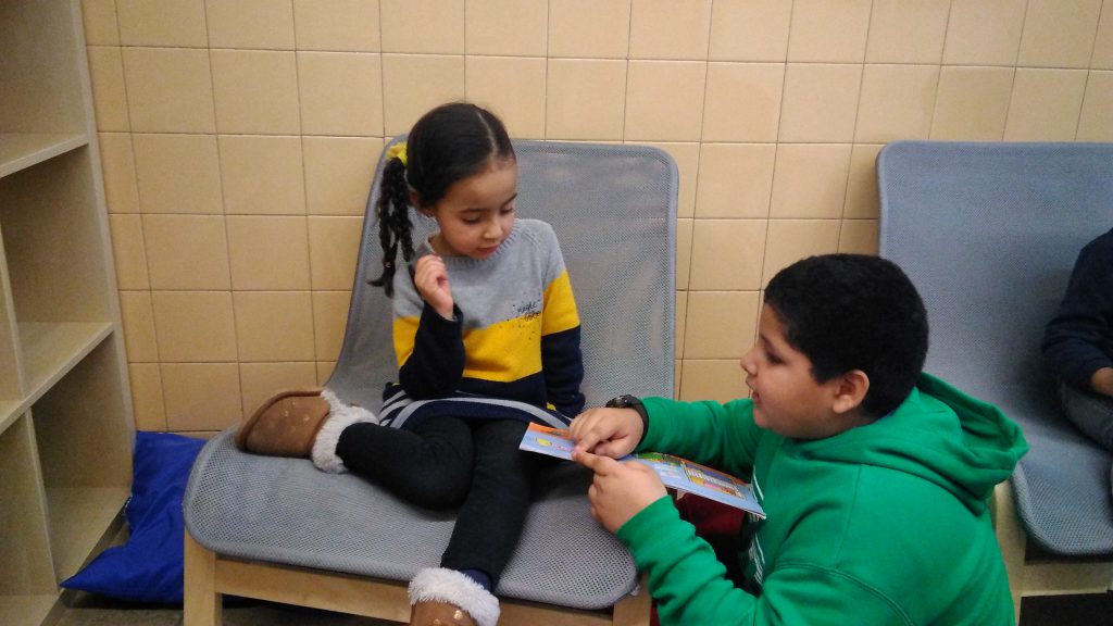 Aquesta tarda, les nenes i els nens de 4t i p5 hem compartit una estona de lectura. Un primer contacte que ens ha fet créixer les ganes de tornar-nos a trobar.