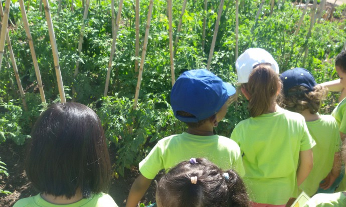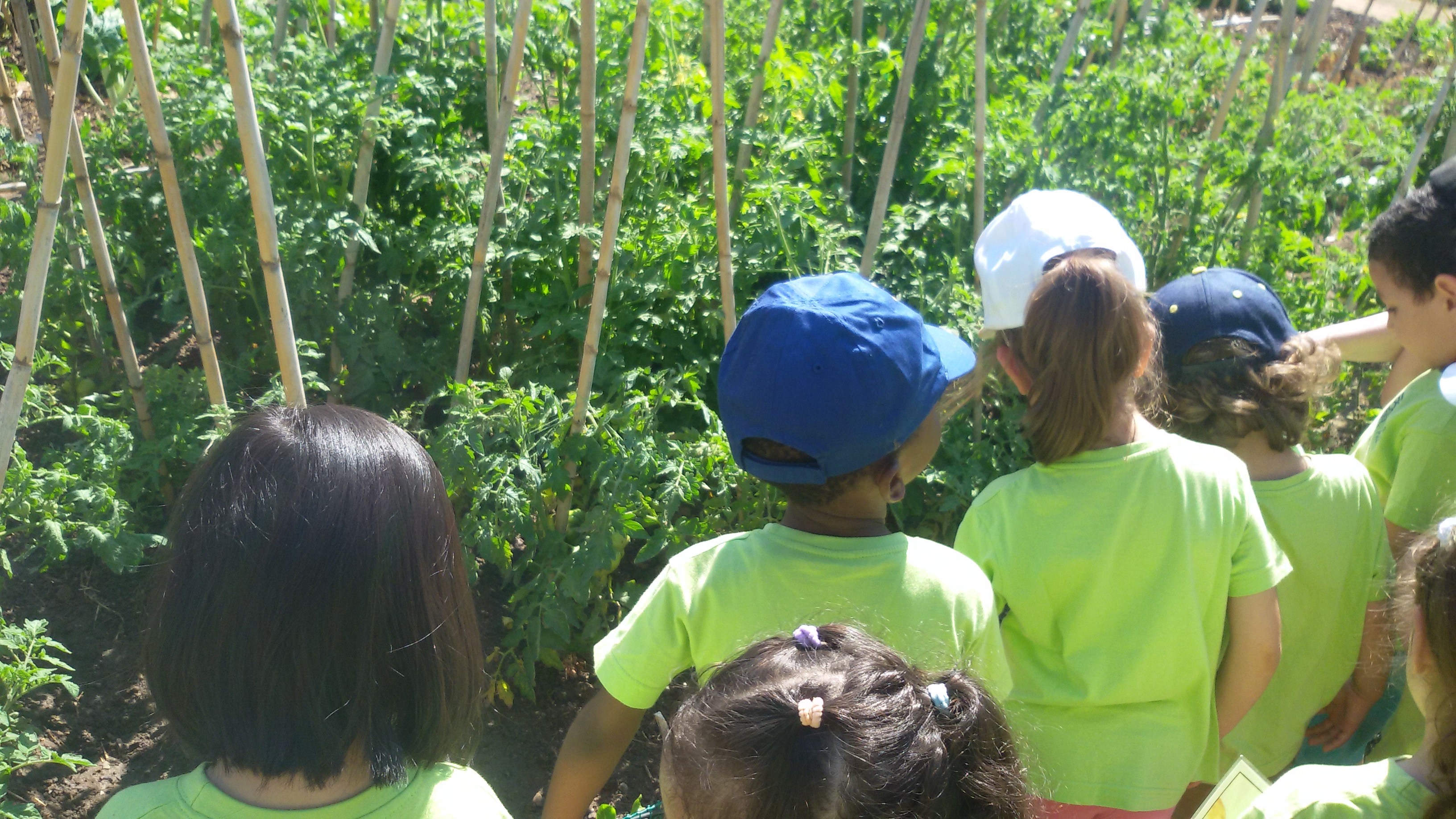 Hem vist patates, mongetes, tomàquets, cols i pagesos conreant l’hort.