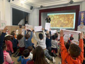 Els infants de la com. de petits ens hem convertit en recol•lectors de cacau, hem experimentat com ha de ser el comerç just i hem tastat la xocolata de comerç just