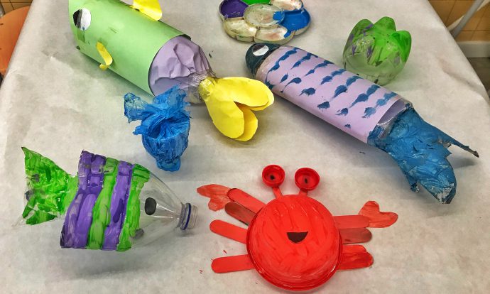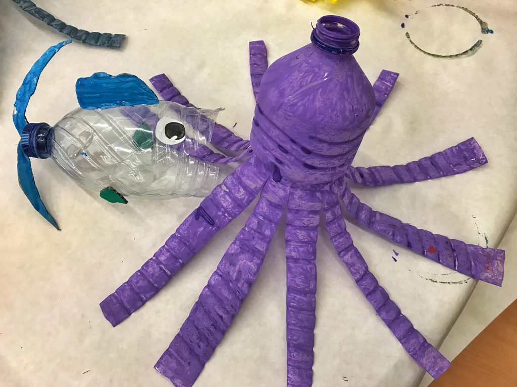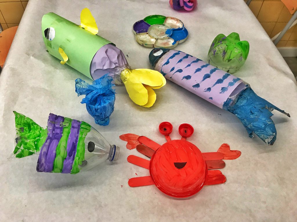 Creem art a partir d’envasos per a la nova instal.lació artística de l’escola. Els hi donem nova vida i els transformem en elements de la fauna i flora marina. Impacients per veure com queda el nostre trosset de mar OPediterrani!