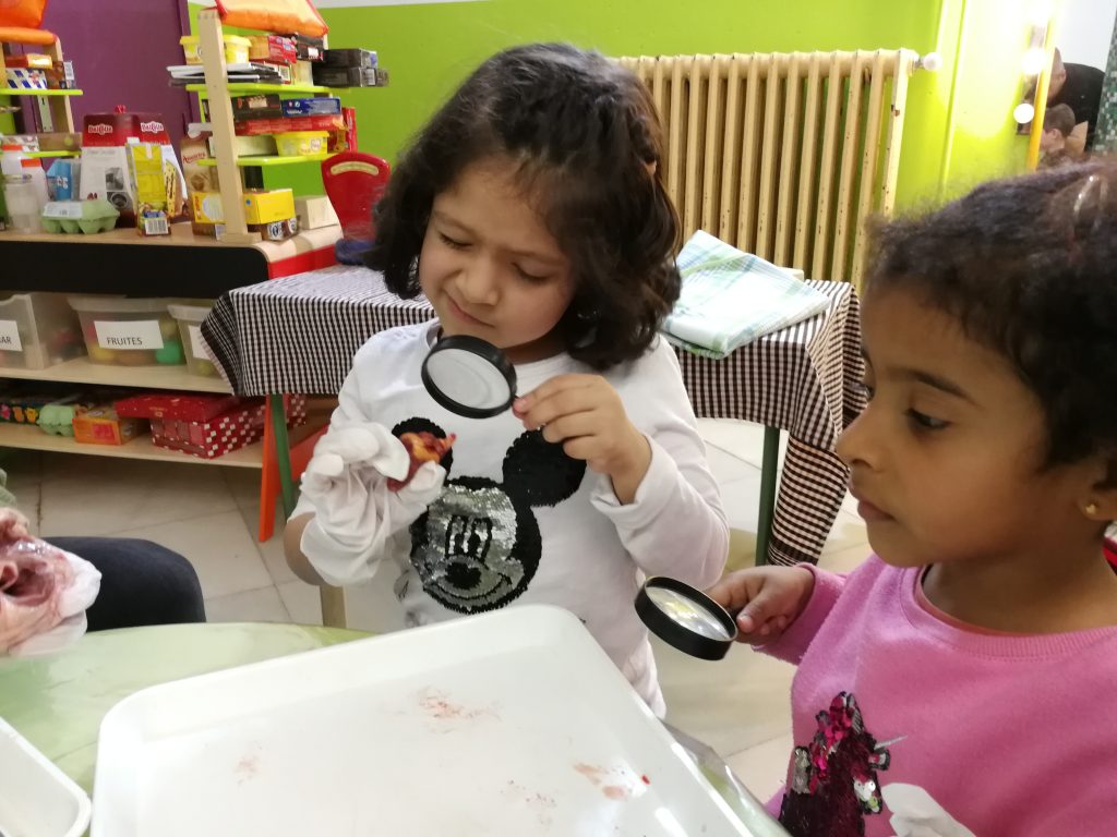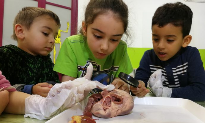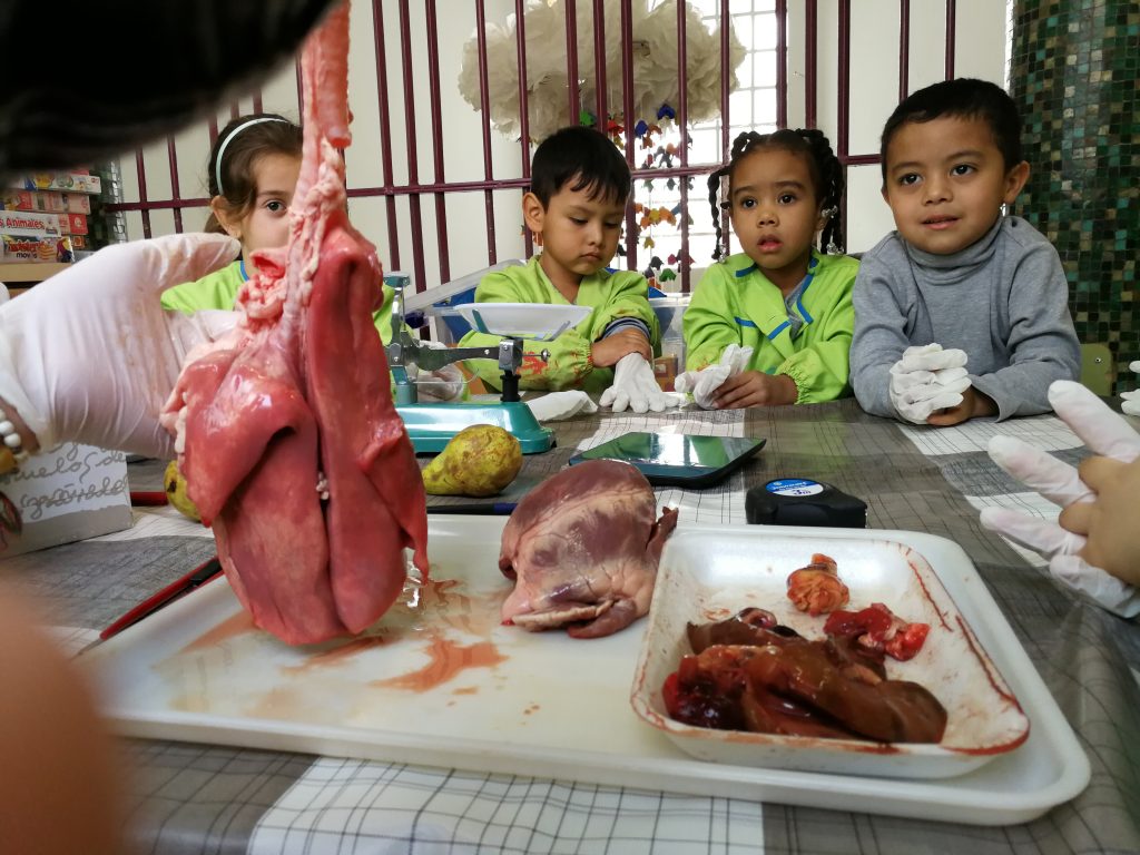 Primer, vam anar a conèixer a en Xavi a la carnisseria, el qual ens va mostrar cors d’animals ben diferents: pollastre, conill, xai, vedella i porc. El següent pas va ser establir comparacions quant a mesura i pes entre ells. I per últim… els vam obrir i vam poder observar que hi ha dintre!!