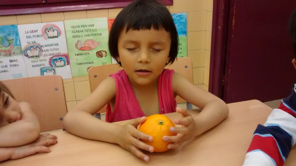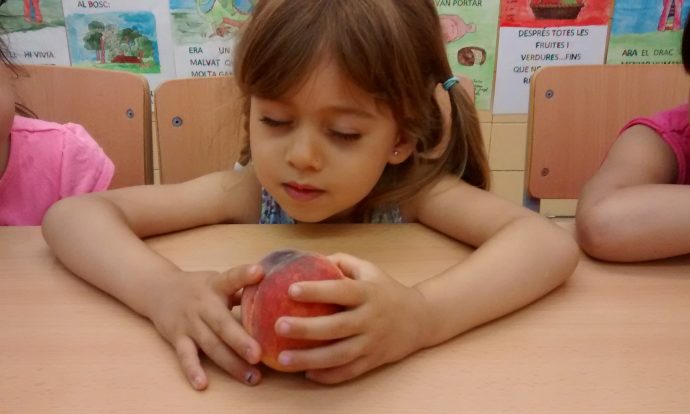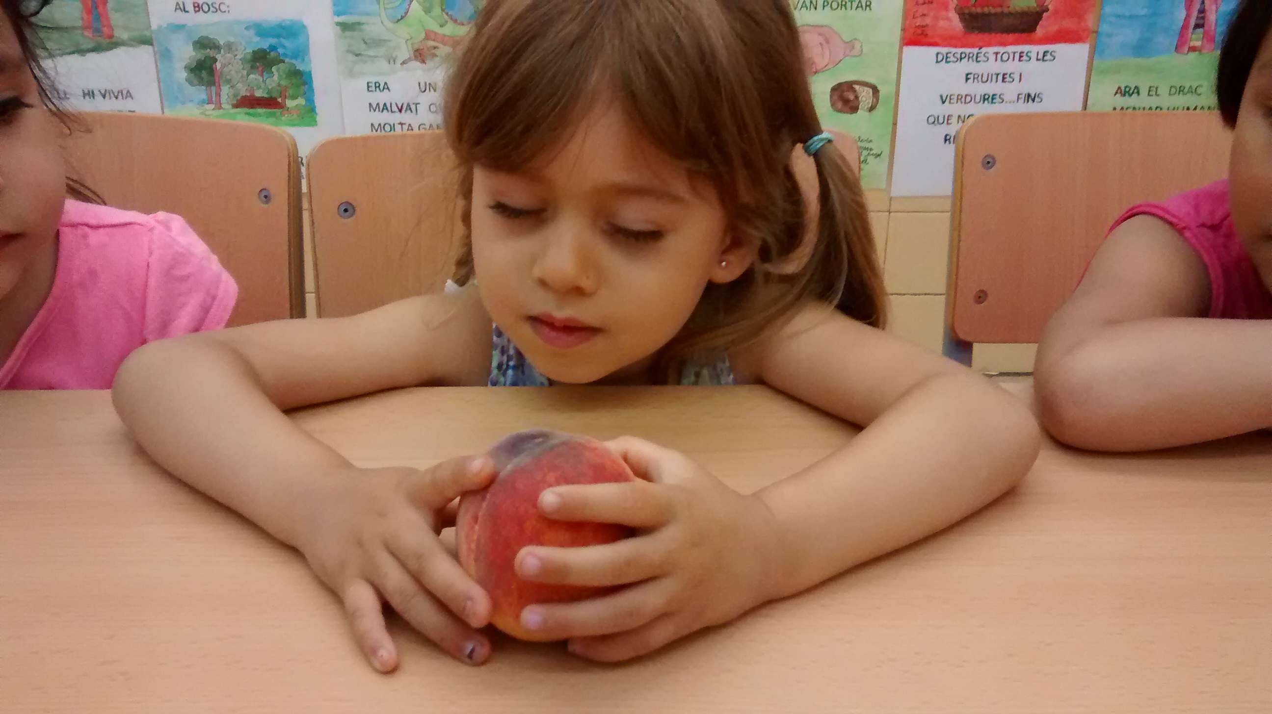 Els nens i les nenes de P3 amb l’ajuda de les mans hem endevinat quina fruita era.