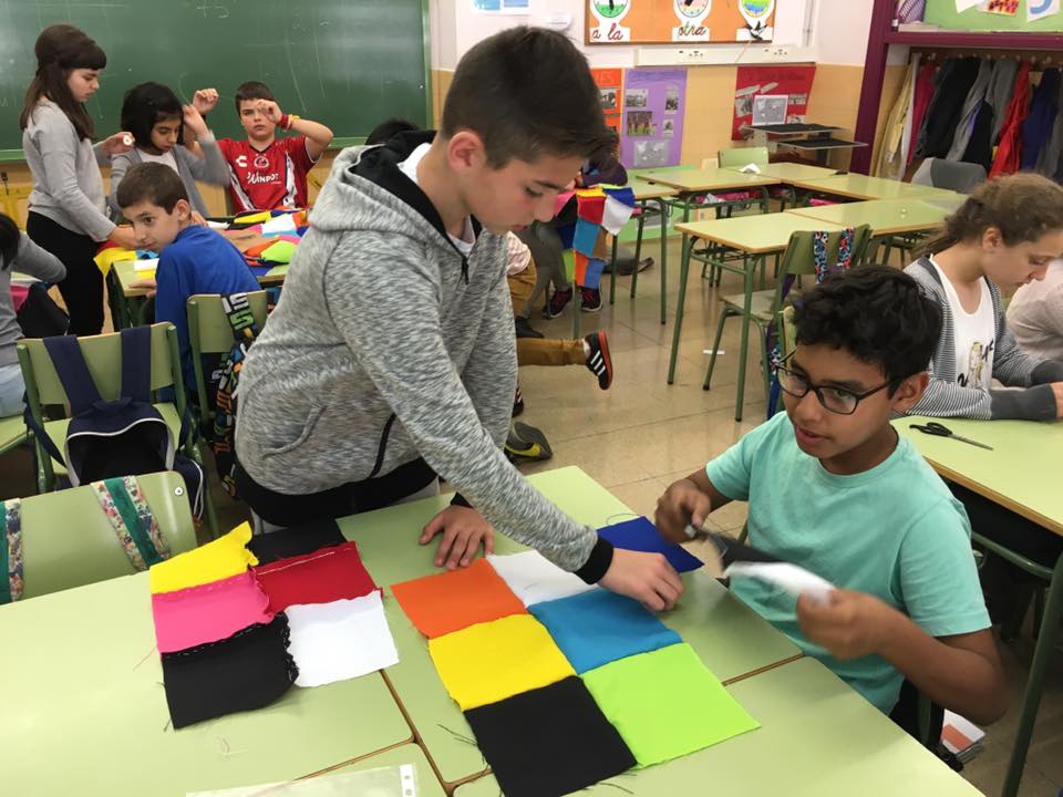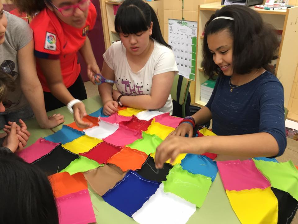 En el marc del projecte somCOLORS els alumnes de 6è vam dissenyar un tapís amb teixits de colors. Després de pensar i de dissenyar com havia de ser, ara toca el torn de cosir-lo. Estem aprenent moltes coses d’un dels oficis més antics!