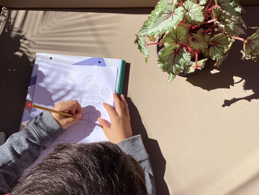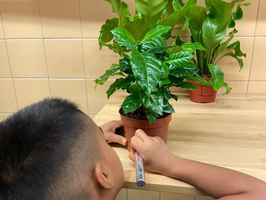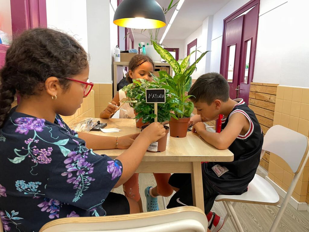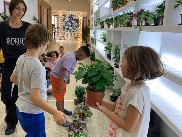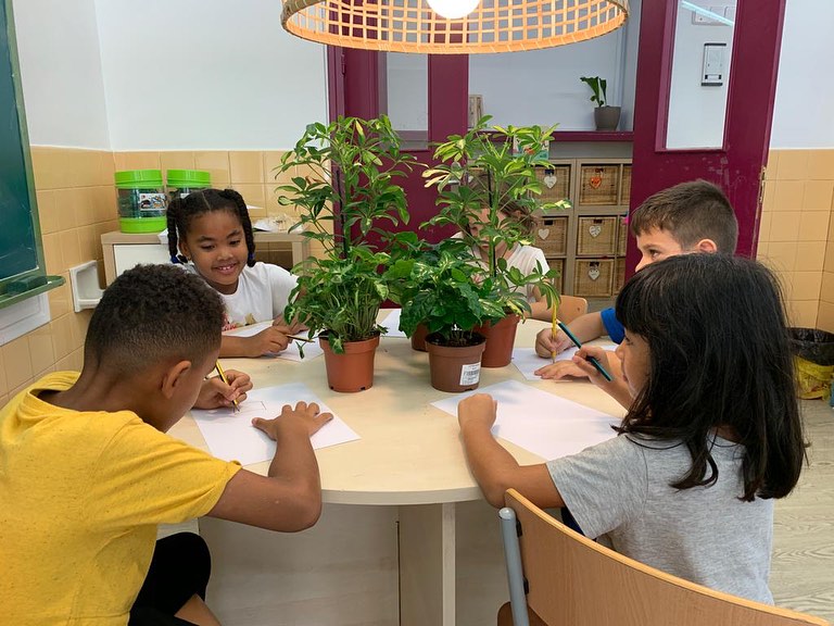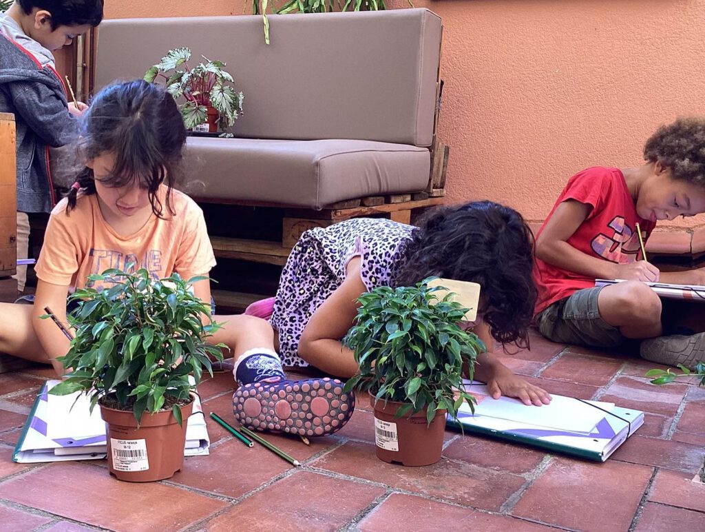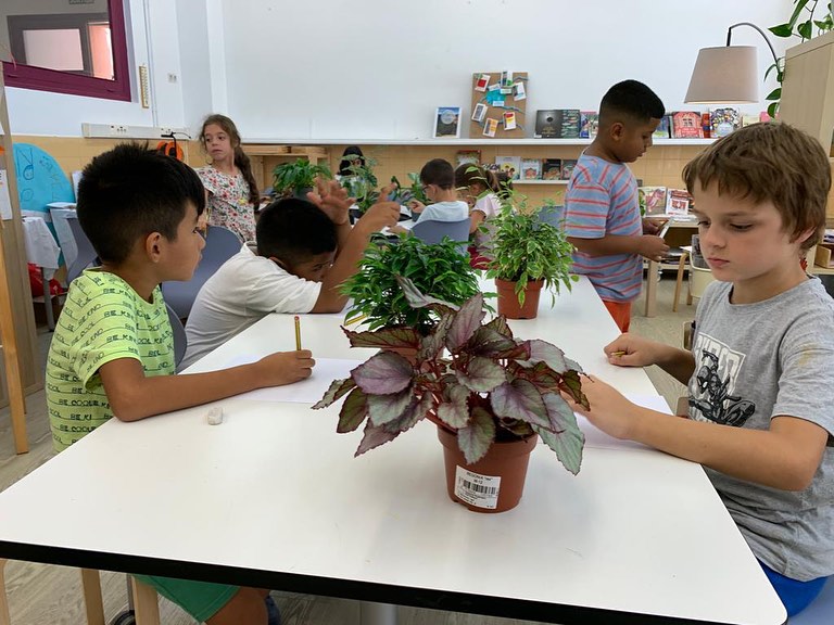 Els infants preparen la instal•lació, descobrint el món de les plantes, així com la cura de la natura.