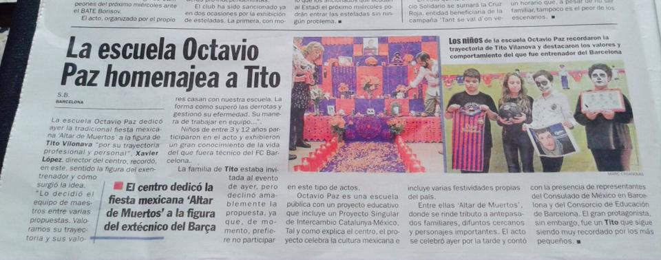 L’homenatge de la Comunitat Educativa de l’escola a Tito Vilanova és noticia als diaris esportius Sport i Mundo Deportivo i al web del Consorci d’Educació de Barcelona.