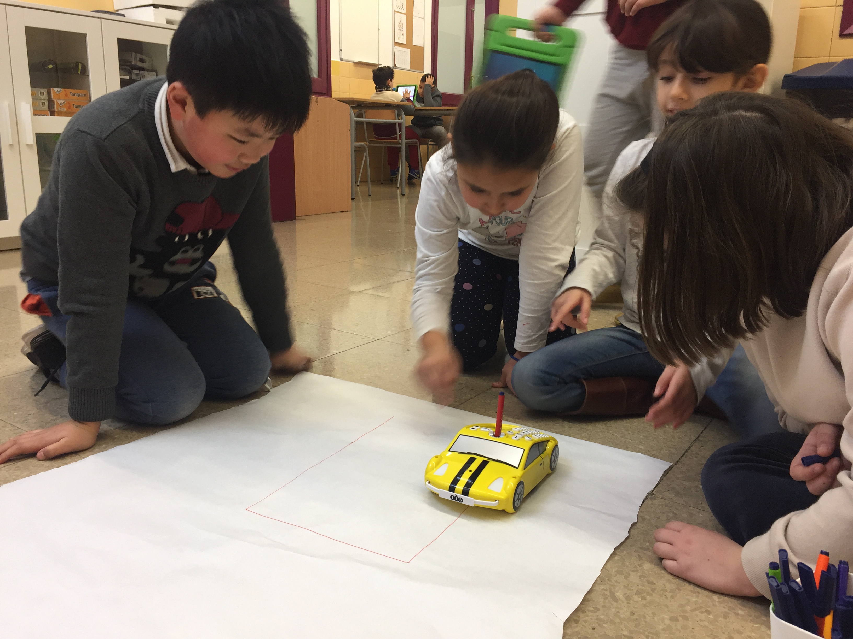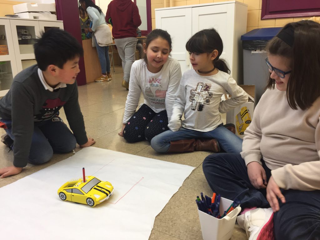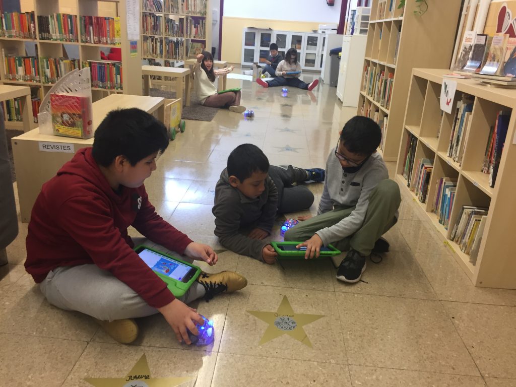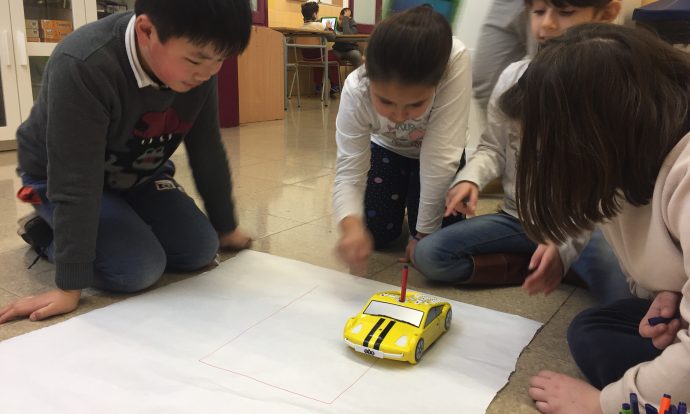 Els infants de 3è i 4t desprès de descobrir i aprendre com programar, hem iniciat els nostres treballs fent-ho tots sols amb les bee-bot i el pro-bot. Ja comencem a elaborar produccions artístiques i laberins!