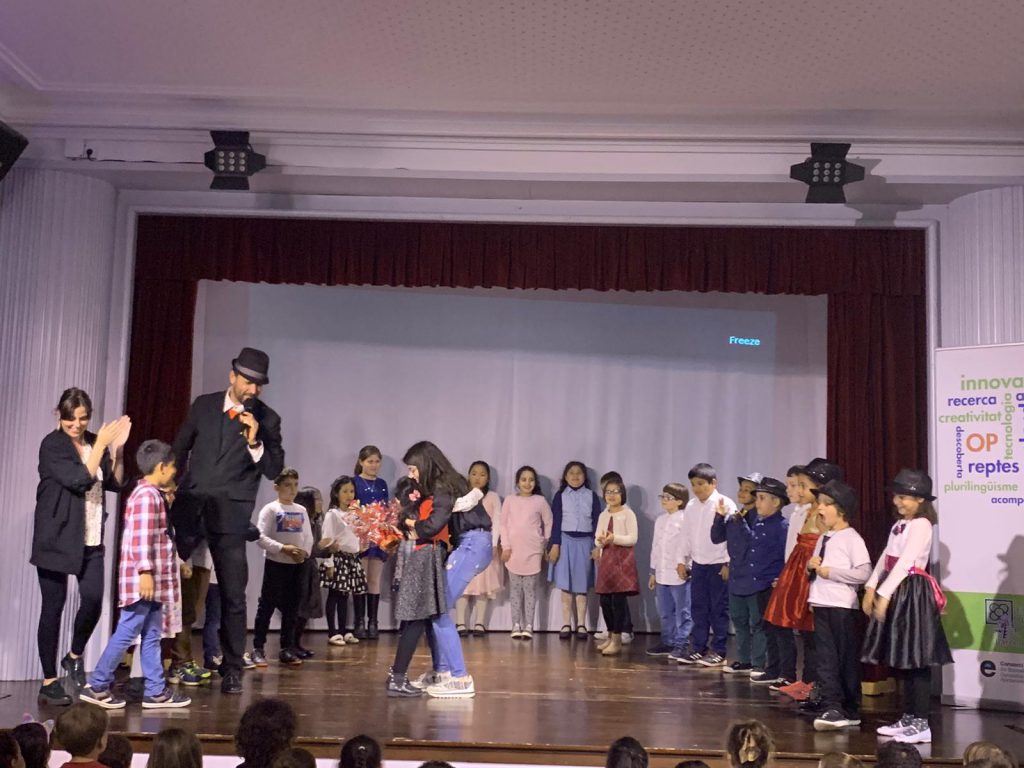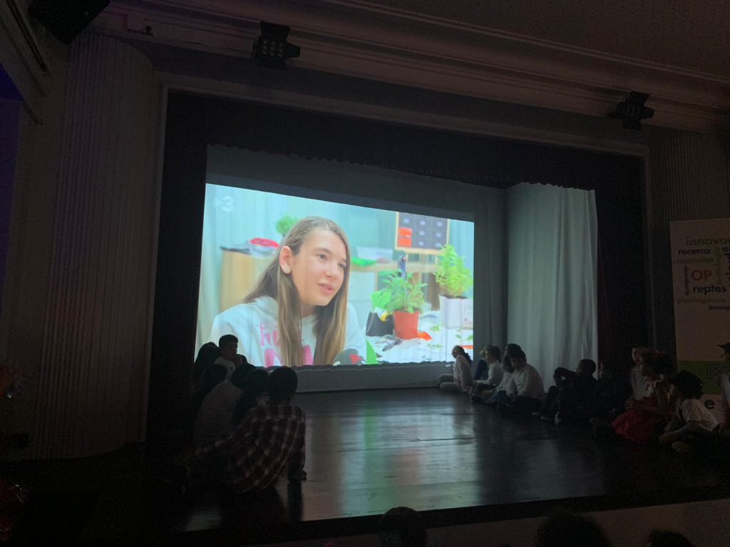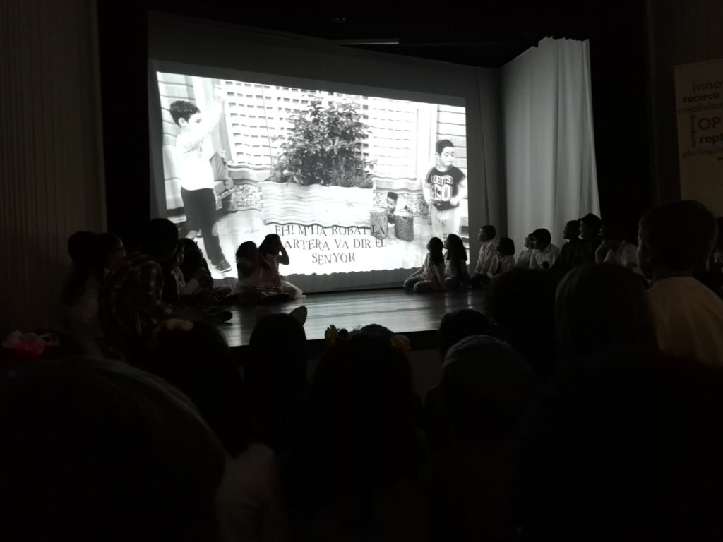 Va ser una tarda amb moltes emocions, ja que darrera hi havien moltes hores de treball. Primer, per grups havíem decidit el títol, els personatges, la història, el guió, el cartell, el vestuari i els espais de gravació de cada pel·lícula. Després vàrem fer el rodatges de totes elles i la posterior edició amb l’ajuda de l’estudiant en pràctiques, la Gemma que va fer un gran treball i li vam agraïr en l’estrena amb unes flors.