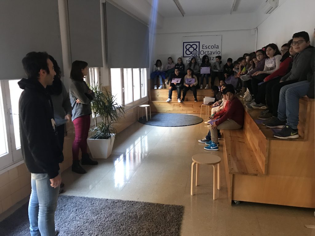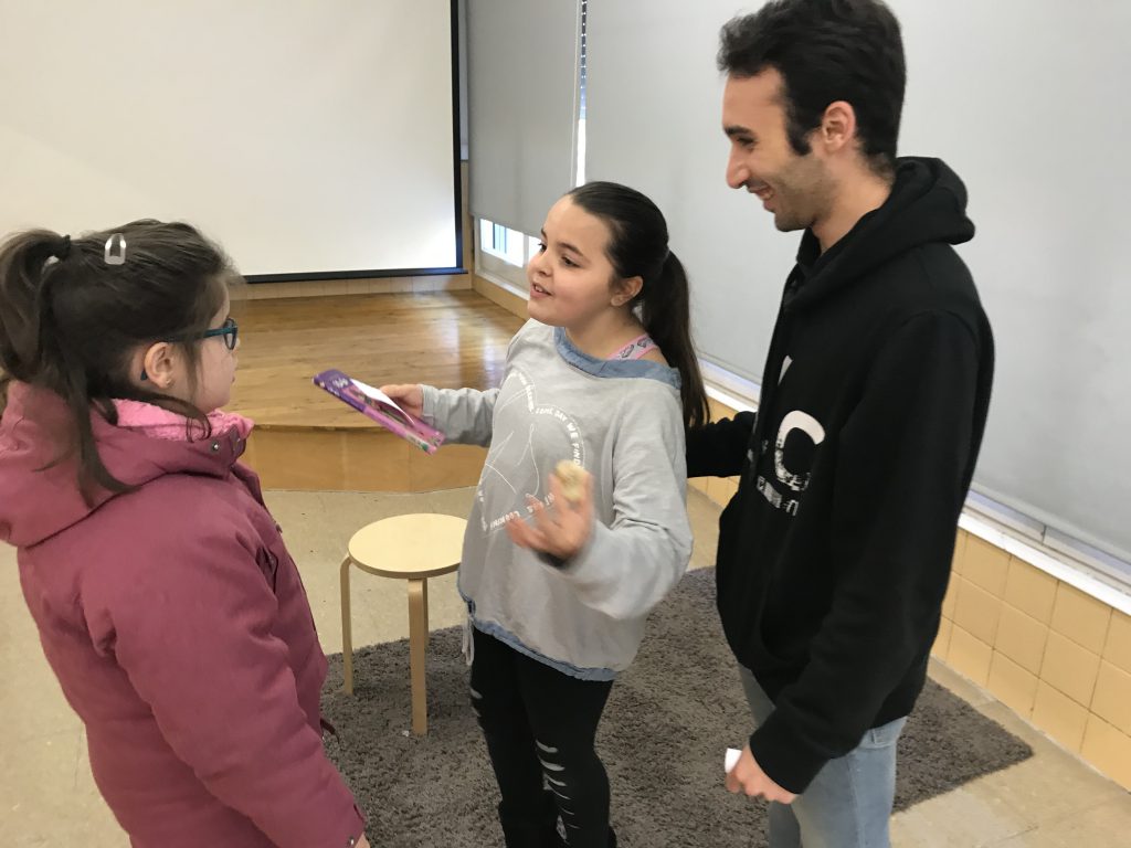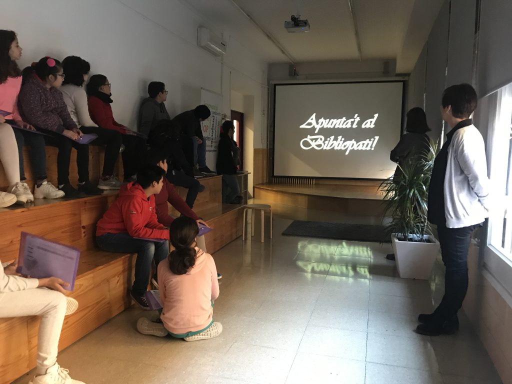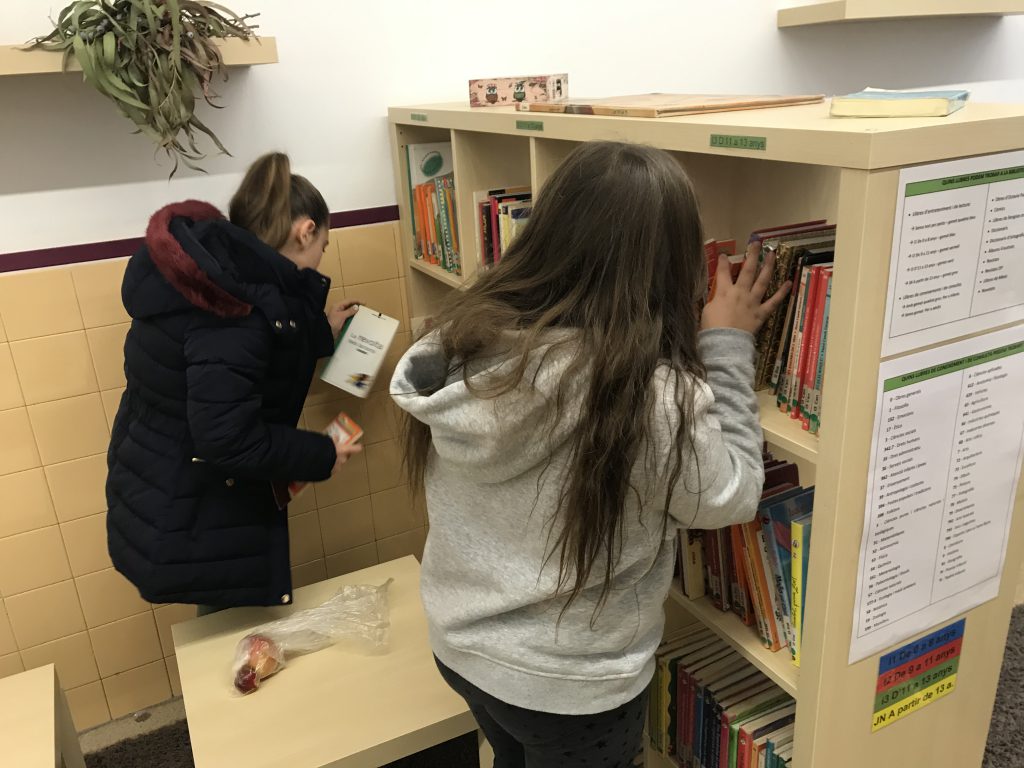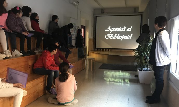 Avui s’ha posat en marxa la nova dinamització del bibliopati. En Jordi, el nou bibliotecari, ha preparat un munt d’activitats la mar d’engrescadores per apropar els llibres a tots els infants de l’escola durant l’hora d’esbarjo.