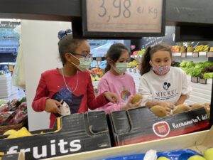 Ens preparem per experimentar amb diferents fruites a la nova cuina! Primer cal fer una bona planificació, així que preparem la llista de la compra, sortim a comprar i aprofitem per fer preguntes als experts que treballen a la fruiteria.